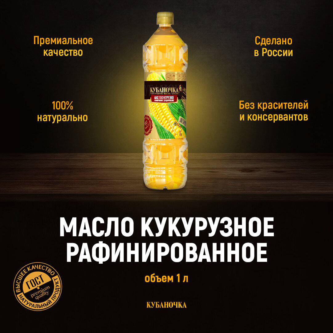 Масло кукурузное Кубаночка рафинированное 1л интересное: