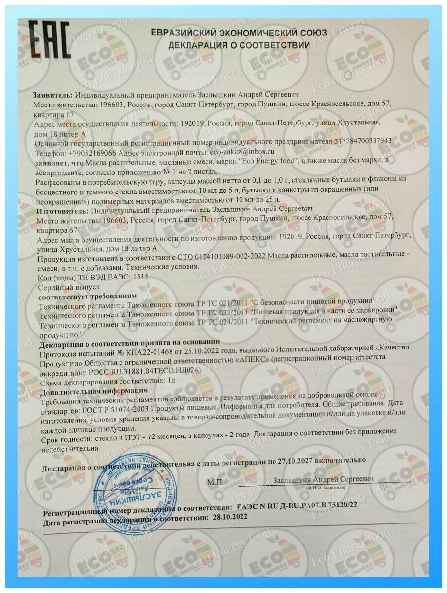 | Состав | масло льняное нерафинированное холодного отжима, желатин говяжий |
