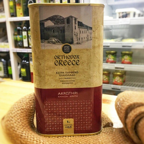 Купить Монастырское оливковое масло первого холодного отжима из региона Акротири, ж/б, 1л