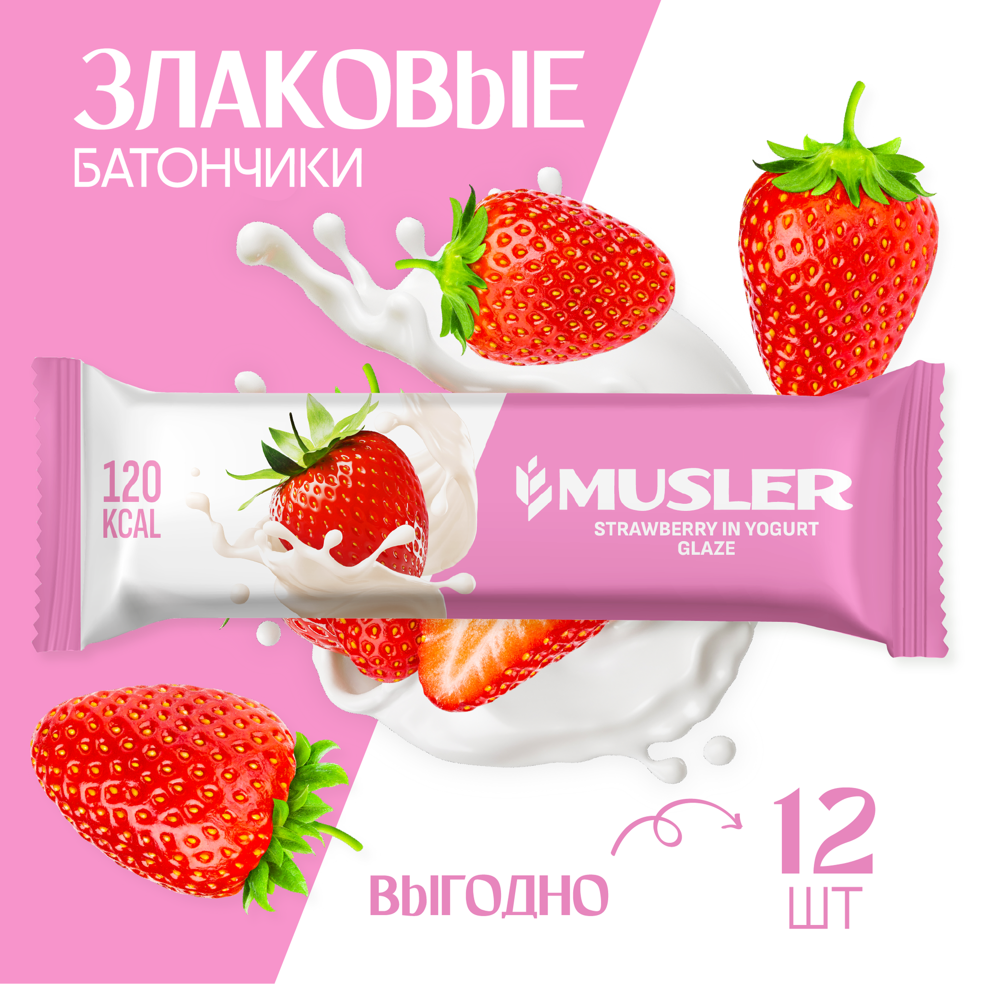Купить Злаковые батончики мюсли Musler Клубника в йогурте 30г (12 шт)