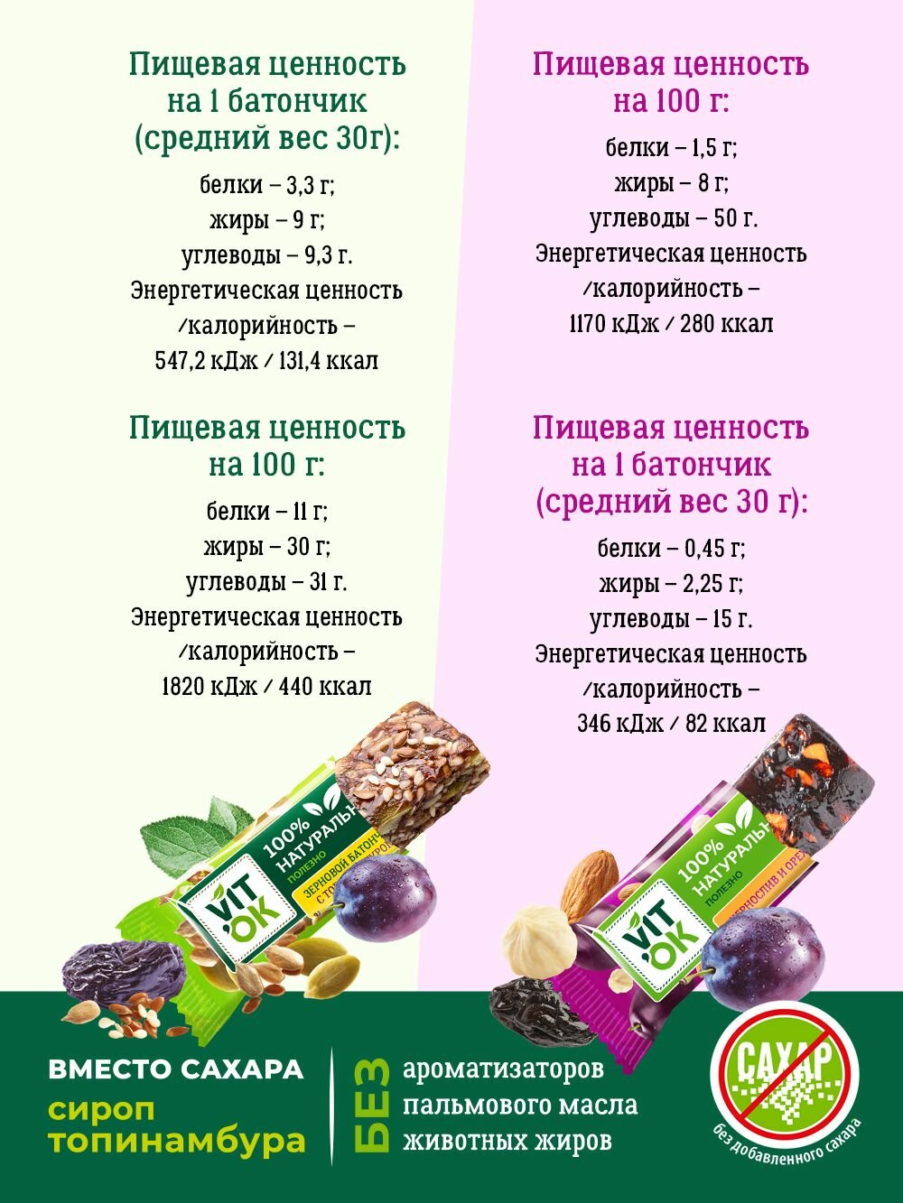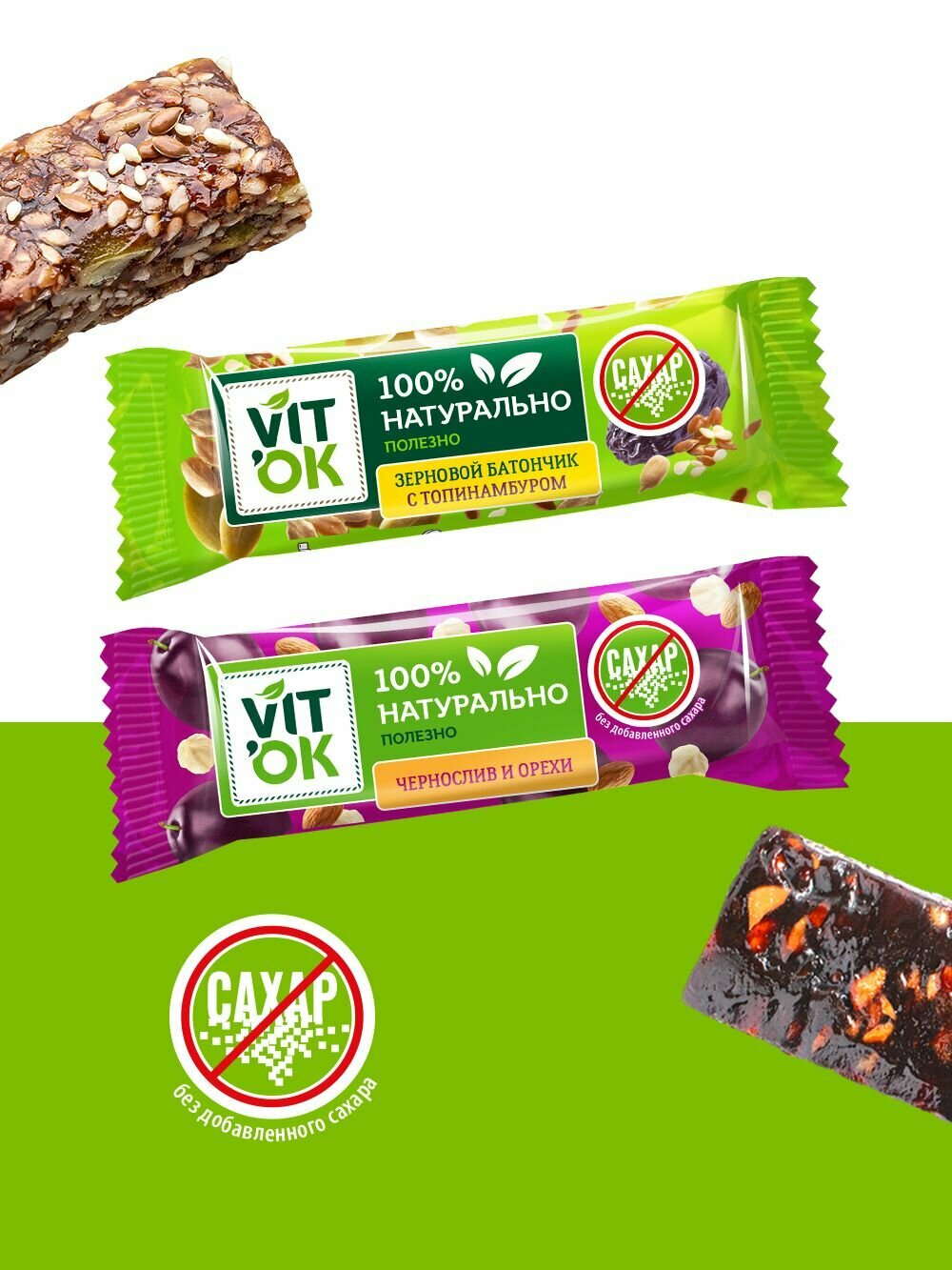 Батончики Vitok ассорти полезные 100% натуральные неглазированные без сахара злаковые и фруктово-ореховые, 36 шт по 30 г интересное: