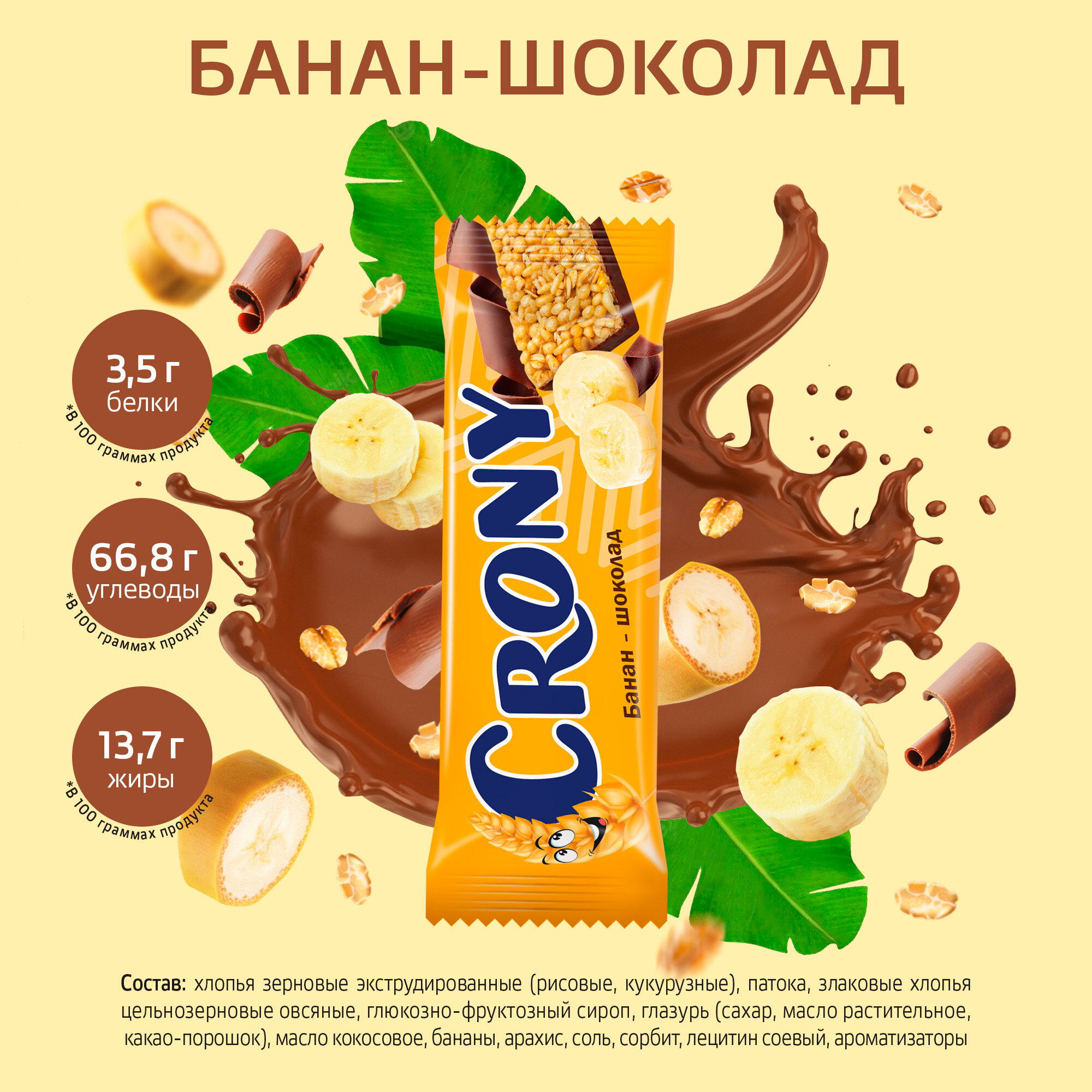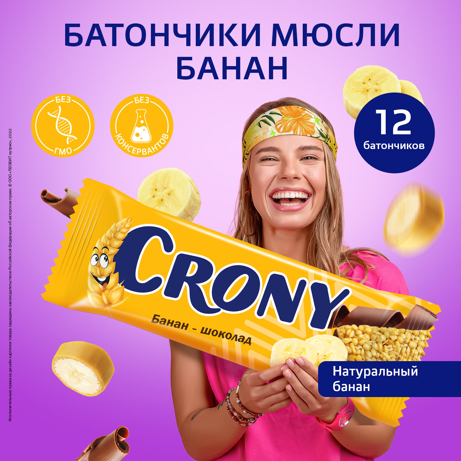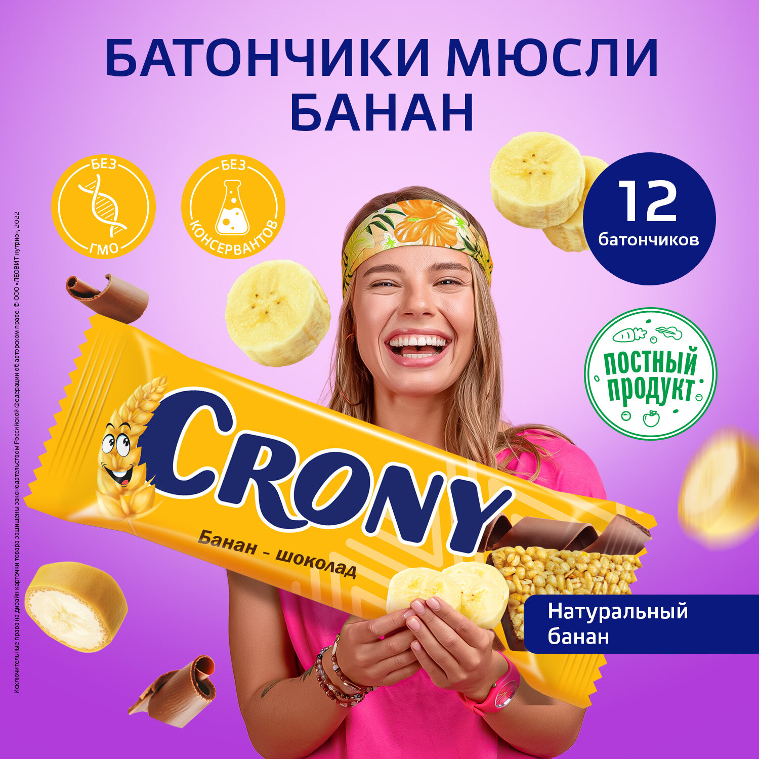 Купить Батончик мюсли Банан и шоколад CRONY леовит Упаковка 12 батончиков по 50 г