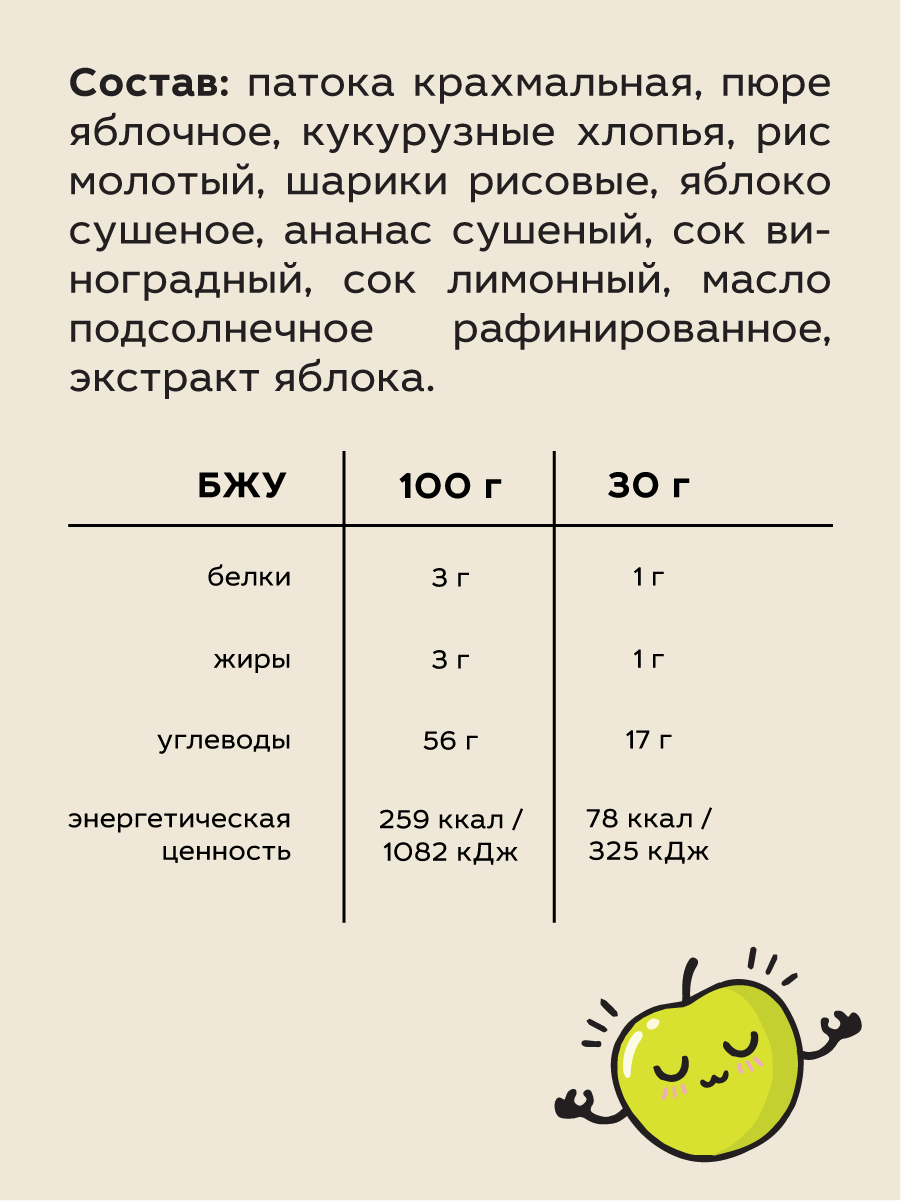 | Не содержит | ГМО, глютен, искусственные красители, консерванты, пальмовое масло, сахар |
