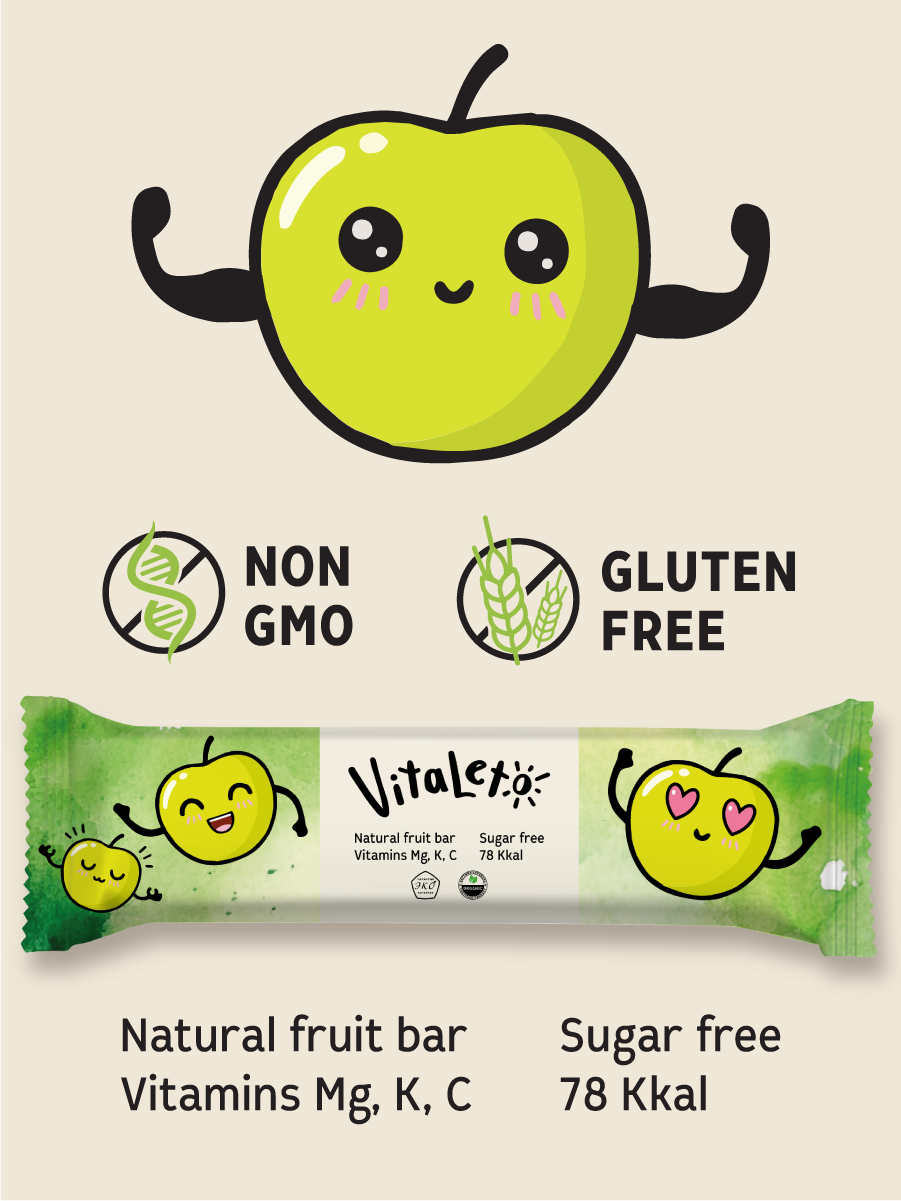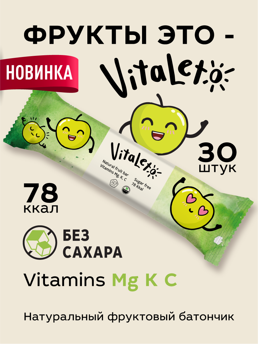 СохранитьБатончик фруктовый Vitaleto "Яблочный пирог" 30г (30шт), Виталето интересное: