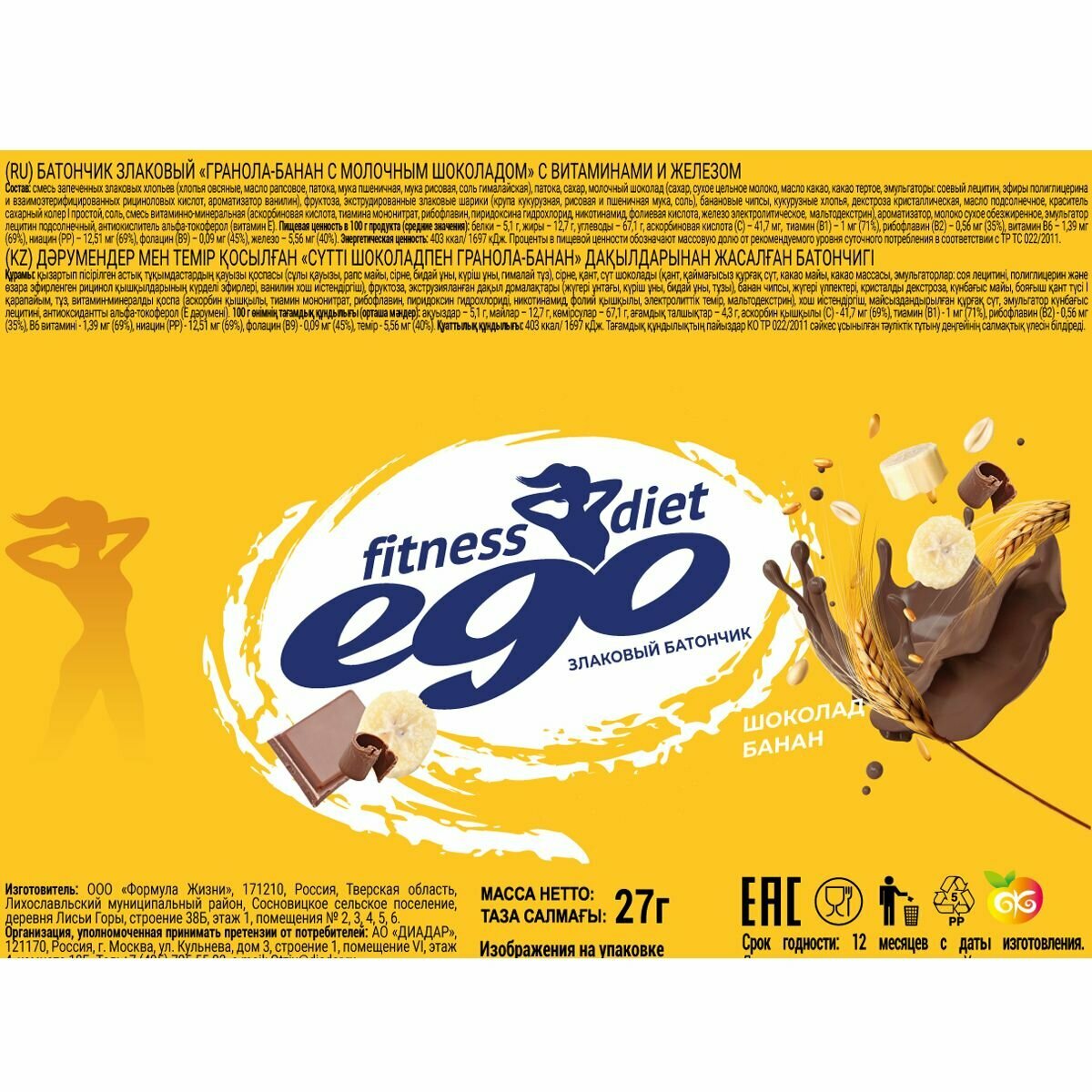 Купить Батончик злаковый "Ego fitness" Гранола-Банан с молочным шоколадом с витаминами и железом 8 шт по 27 гр