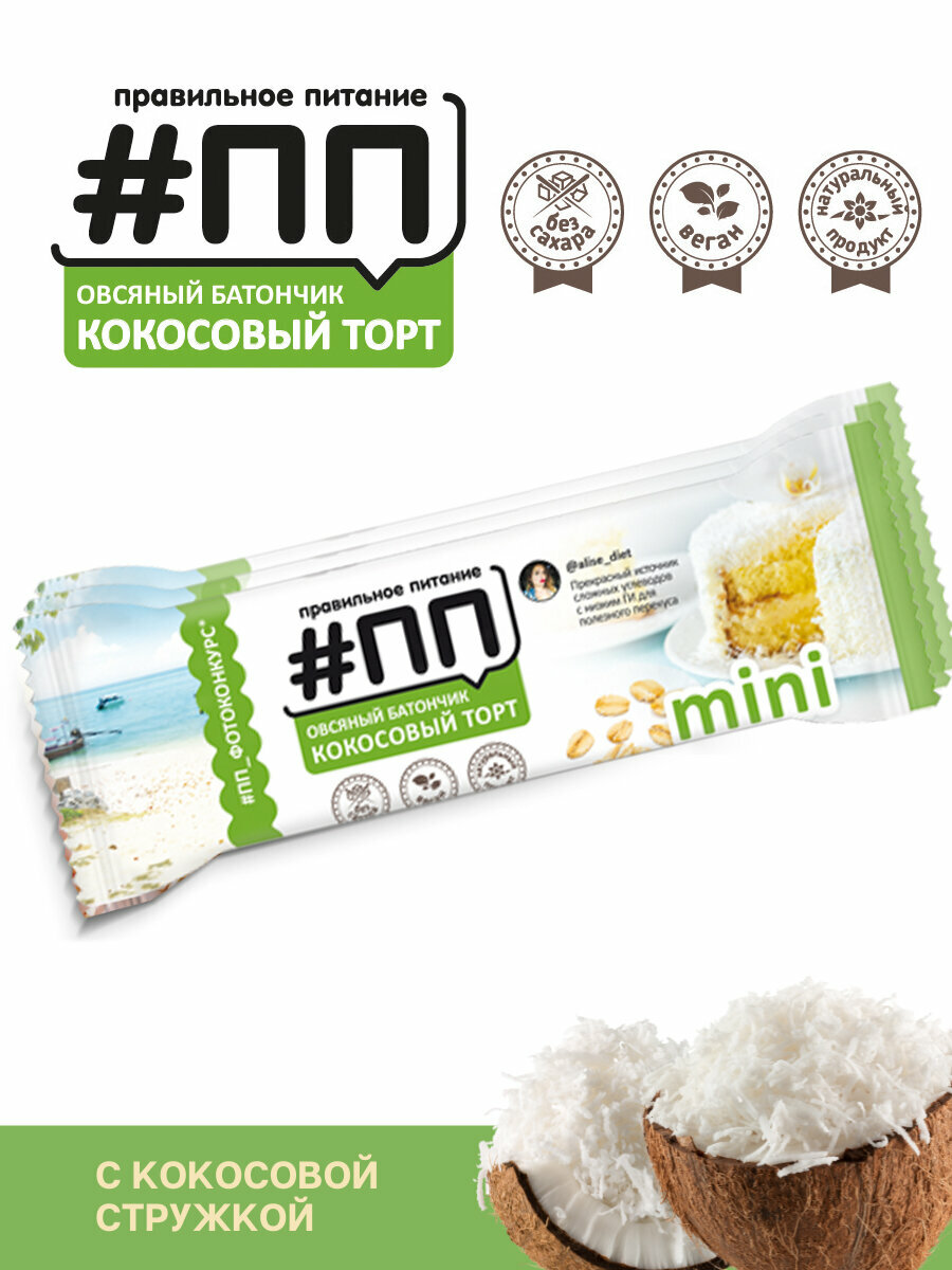 Батончики овсяные #ПП mini Кокосовый торт с кокосовой стружкой 25г набор 15 шт
