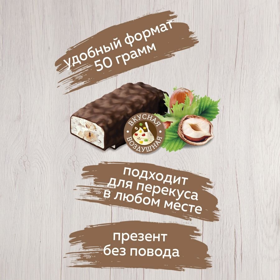 Батончик Нуга с фундуком и воздушным рисом глазированная 12шт по 50 гр. (Мишкино/Деликатеса) интересное: