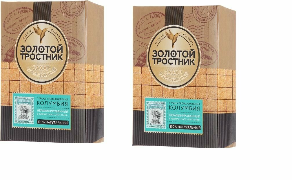 Купить Сахар «Мистраль» Золотой тростник тростниковый нерафинированный в кубиках, 400 г 2 коробочки