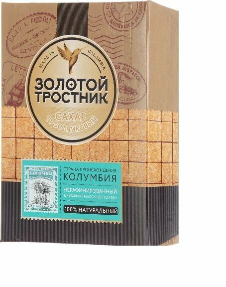 Золотой тростник сахар тростниковый, нерафинированный в кубиках, 400 г - 2 шт.
