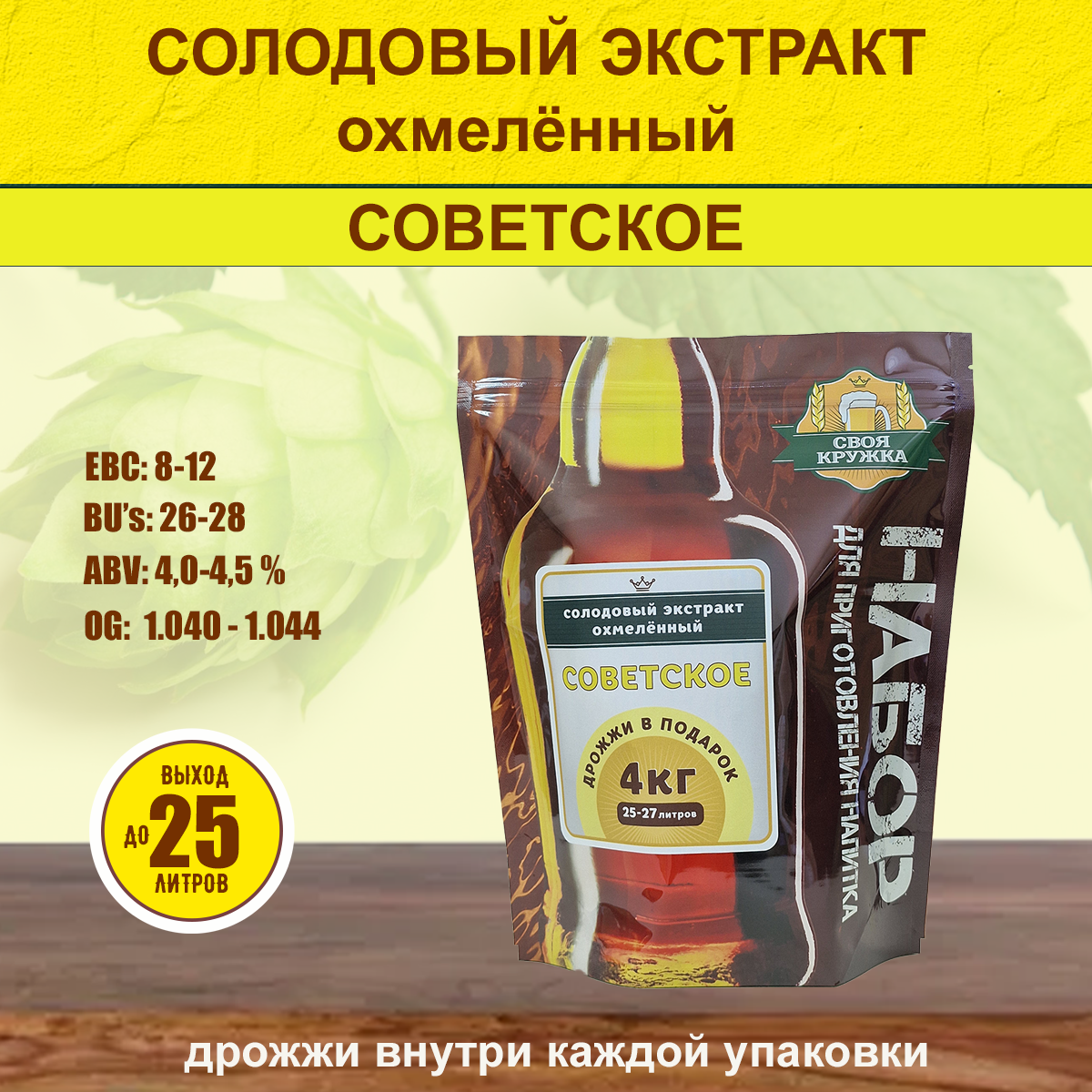 Солодовый экстракт "Своя кружка" охмелённый "Советское" 4кг интересное:
