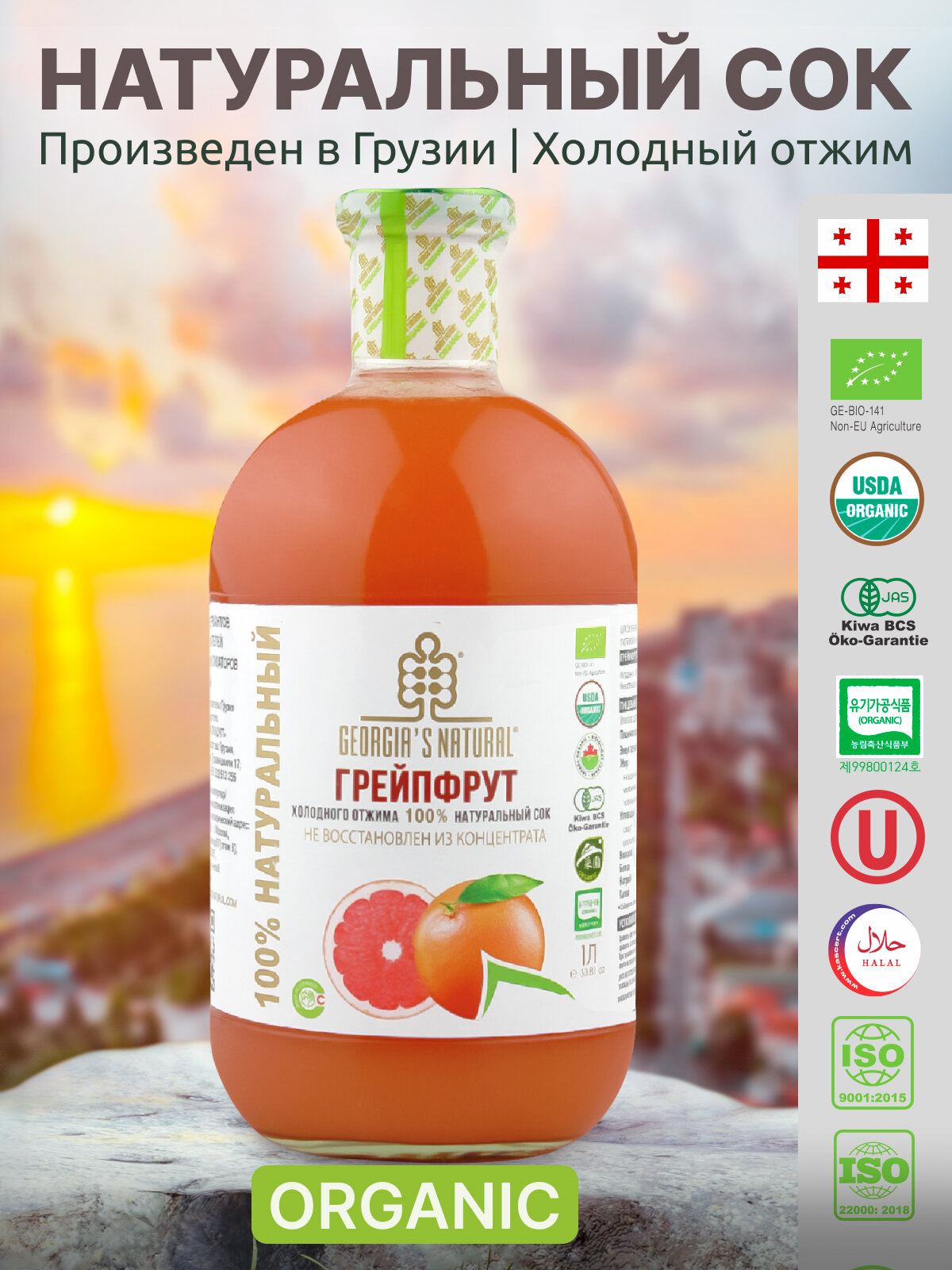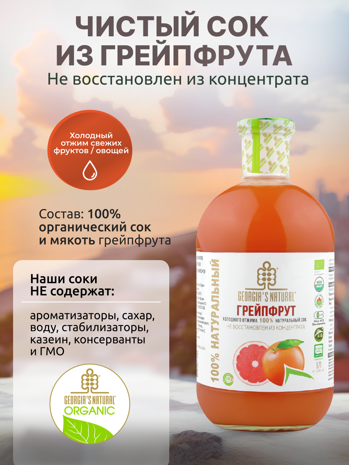 Грейпфрутовый сок холодного отжима натуральный "GEORGIA'S NATURAL" ст/б 1000мл (Грузия) интересное: