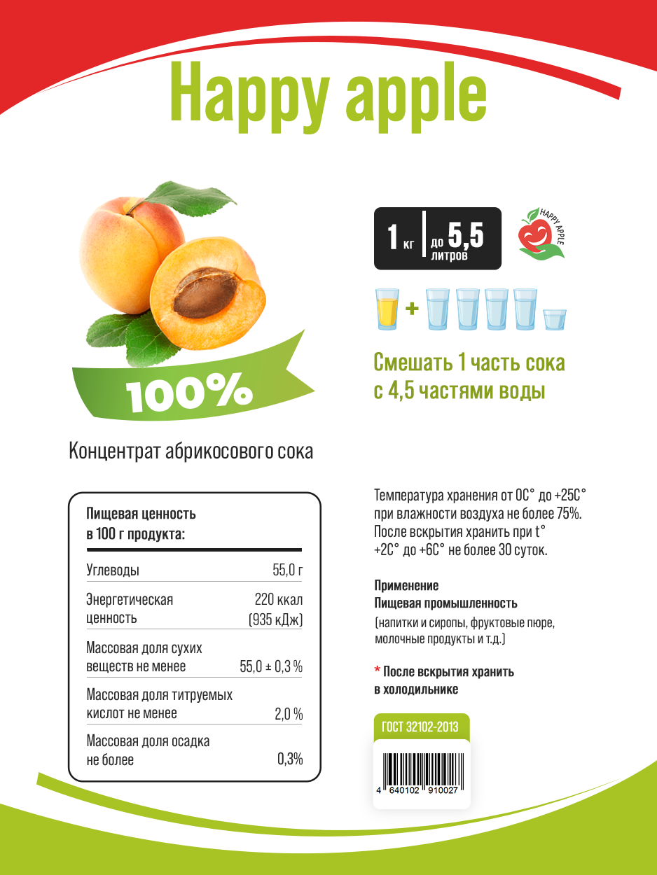 Сок концентрированный Абрикос 1 кг, кисл. 2% (Happy Apple) интересное:
