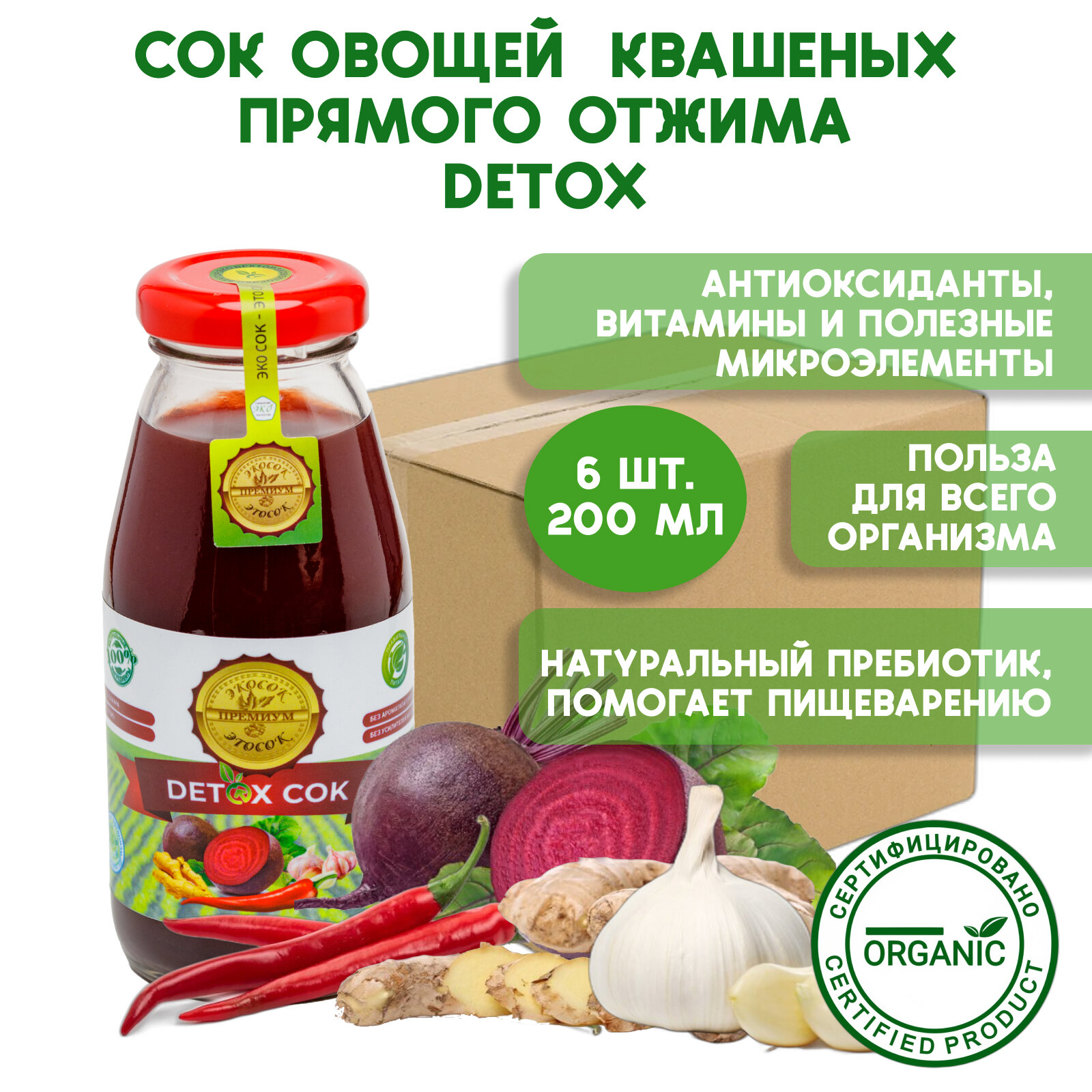 Купить Сок Эко сок - Это сок DETOX (Детокс) очищение организма, из квашеных овощей. 0,2 л. Упаковка 6 шт.