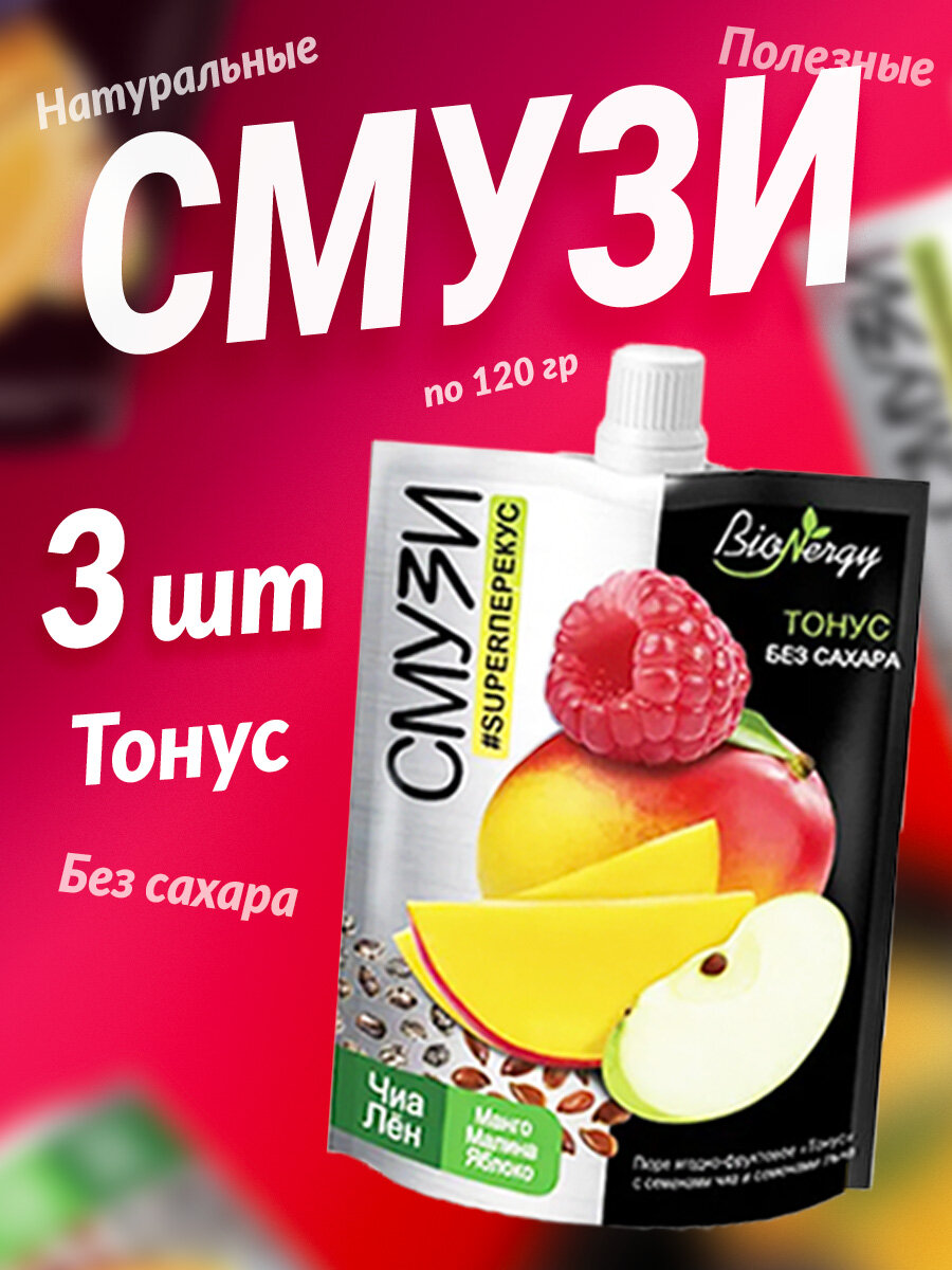 Смузи ягодно-фруктовое Тонус BioNergy с семенами чиа и семенами золотого льна, 15 шт