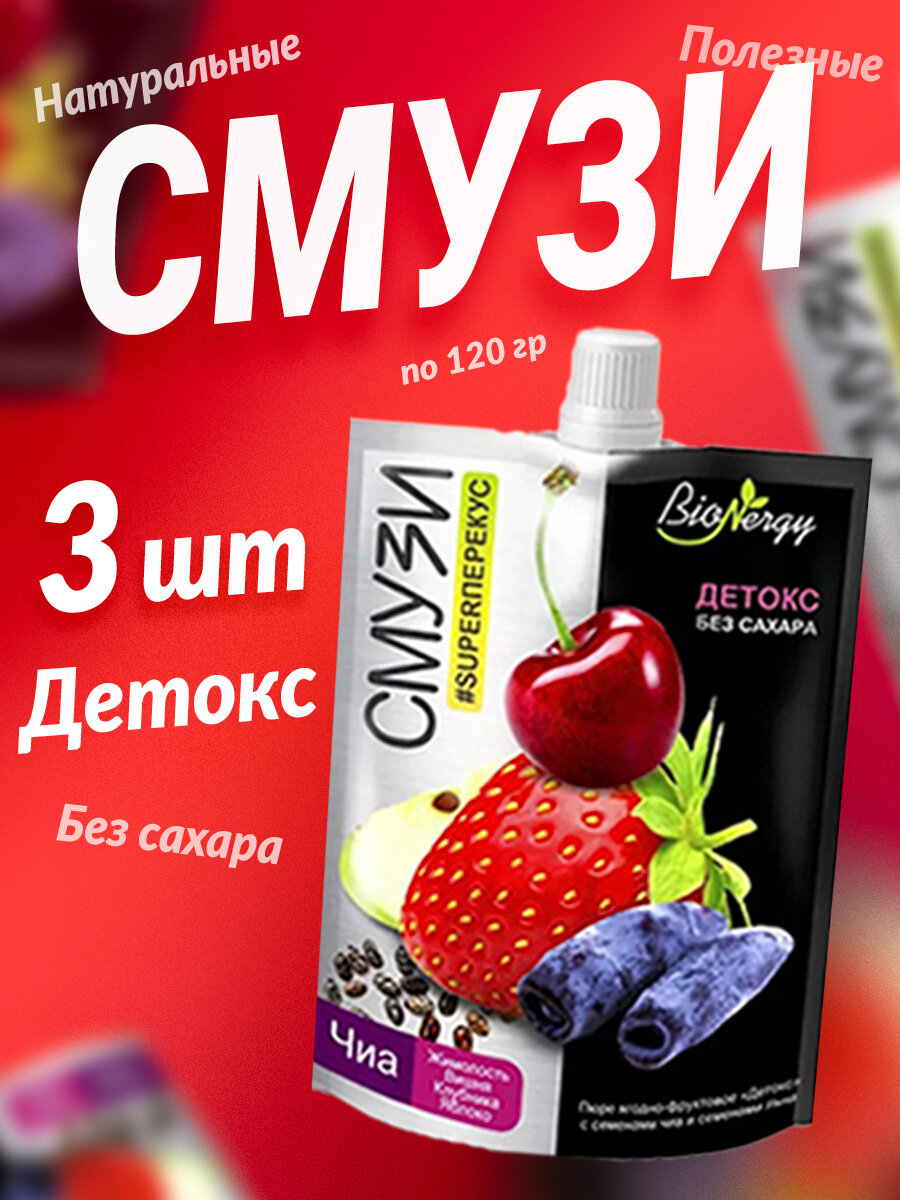| Дополнительная информация | Детокс: пюре клубничное, вода, пюре яблочное, пюре вишневое, сок вишневый концентрированный, пюре жимолостное, сок виноградный концентрированный, семена чиа, антиокислитель - аскорбиновая кислота Тонус: пюре яблочное, пюре малиновое, вода, сок манго концентрированный, пюре манго концентрированное, семена чиа, семена золотого льна, антиокислитель -аскорбиновая кислота Фитнес: пюре яблочное, вода, сок ананасовый концентрированный, пюре клюквенное, семена чиа, гуммиарабик (пищевое волокно Фибрегам В), антиокислитель - аскорбиновая кислота Энергия: пюре банана, сок облепиховый прямого отжима, сок манго концентрированный, пюре яблочное, вода, семена чиа, семена золотого льна, антиокислитель - аскорбиновая кислота, экстракт гуараны Баланс: сок манго, пюре яблочное, пюре черничное, пюре из аронии, вода, сок апельсина, семена чиа, антиокислитель-аскорбиновая кислота. Изготовлен из концентрированных соков манго и апельсина. |