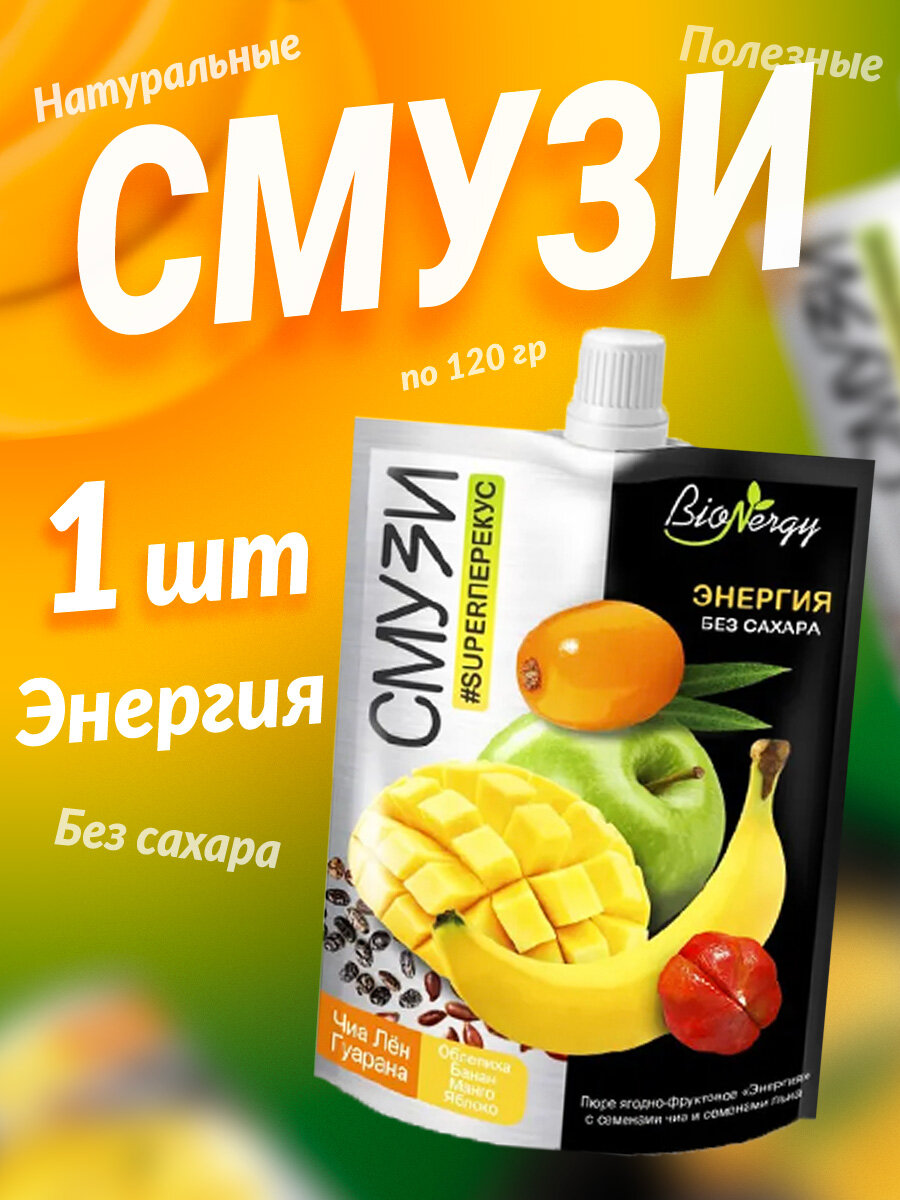 Ассорти смузи ягодно-фруктовые BioNergy с семенами чиа, 5 вкусов