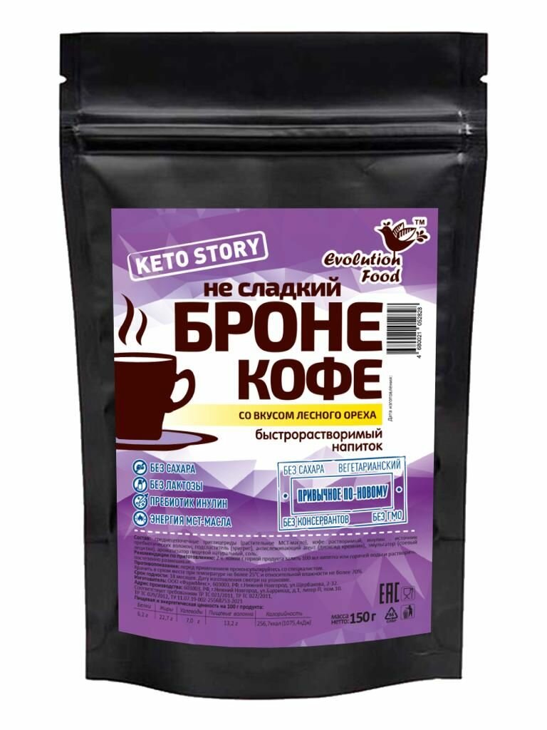 Кето Броне Кофе напиток для похудения на основе МСТ масла без сахара 150 гр. Evolution Food