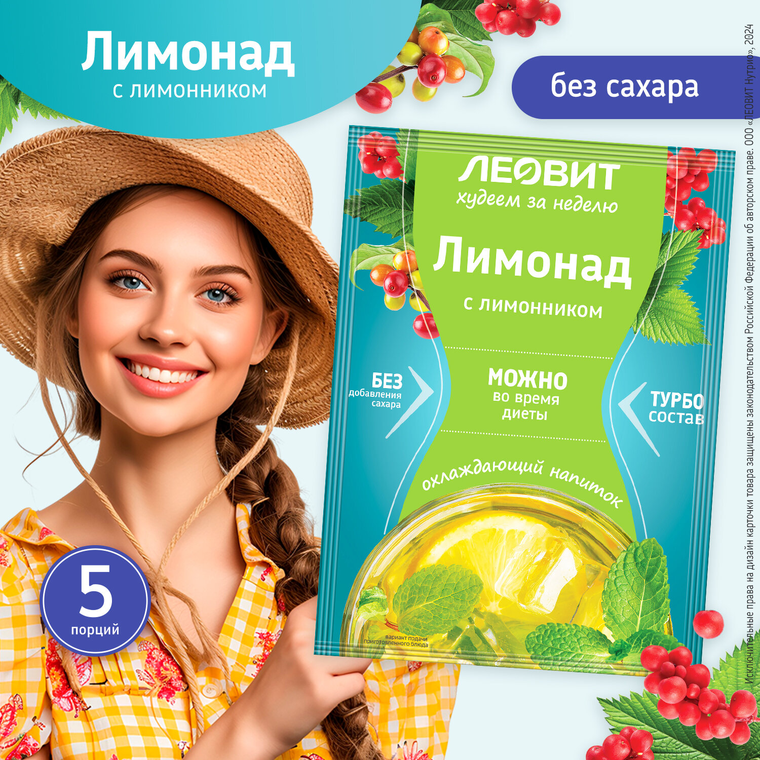 Лимонад с L-карнитином без сахара 15 шт 12 г жиросжигатель для похудения Худеем за неделю Леовит быстрого приготовления