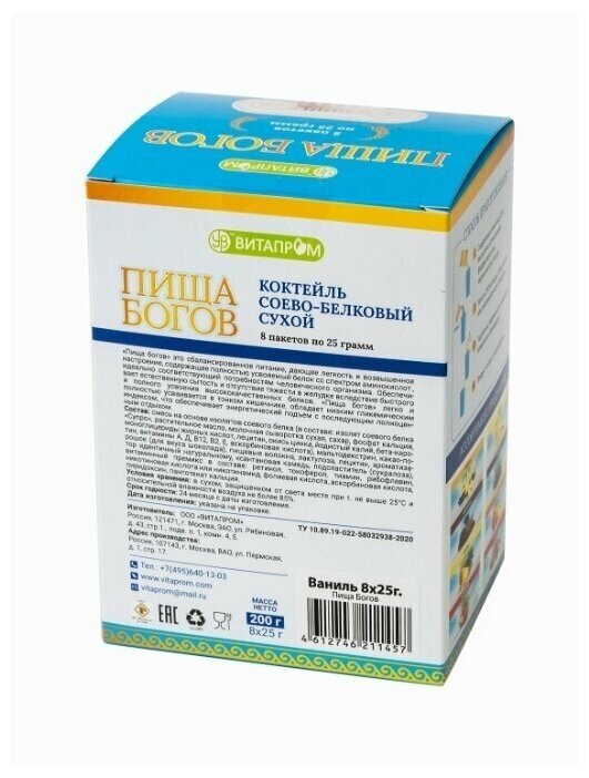Коктейль соево-белковый сухой "Пища богов" 200 гр Ваниль интересное: