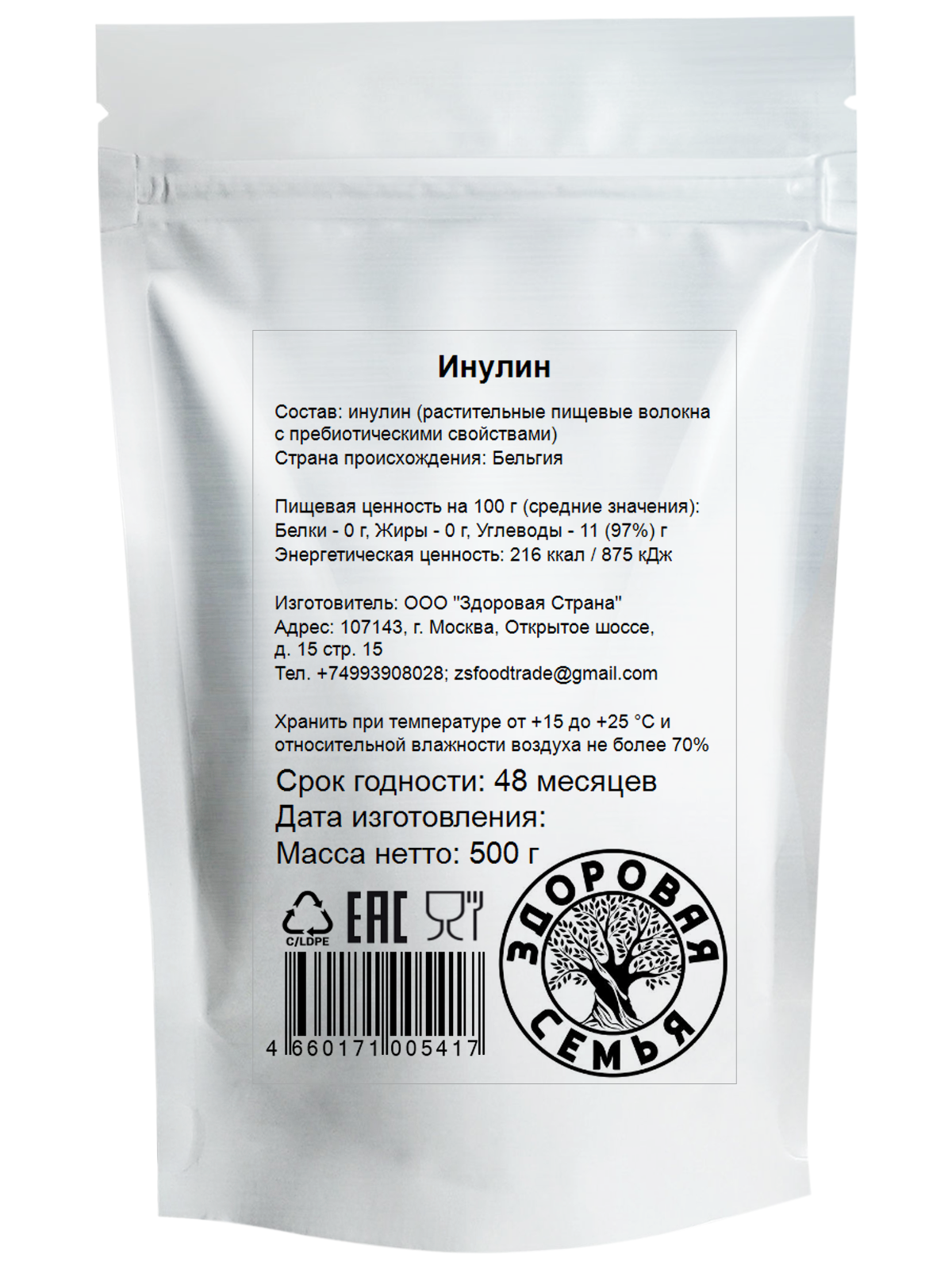 Купить Инулин Здоровая Семья, сахарозаменитель, растворимая клетчатка, 500 г