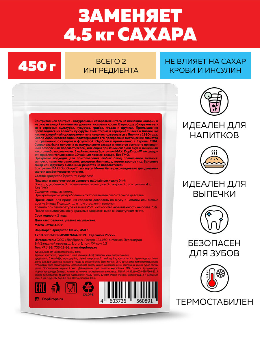 Сахарозаменитель DopDrops MAXI без сахара заменитель сахара 450 г интересное: