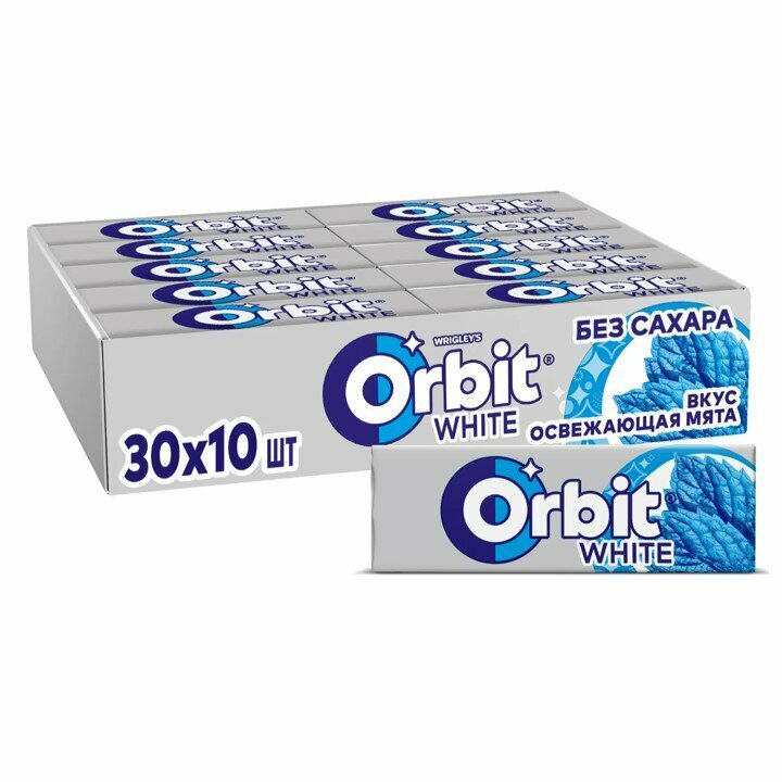 Купить Orbit "White Освежающая мята" жевательная резинка без сахара, 30 пачек по 13,6 г