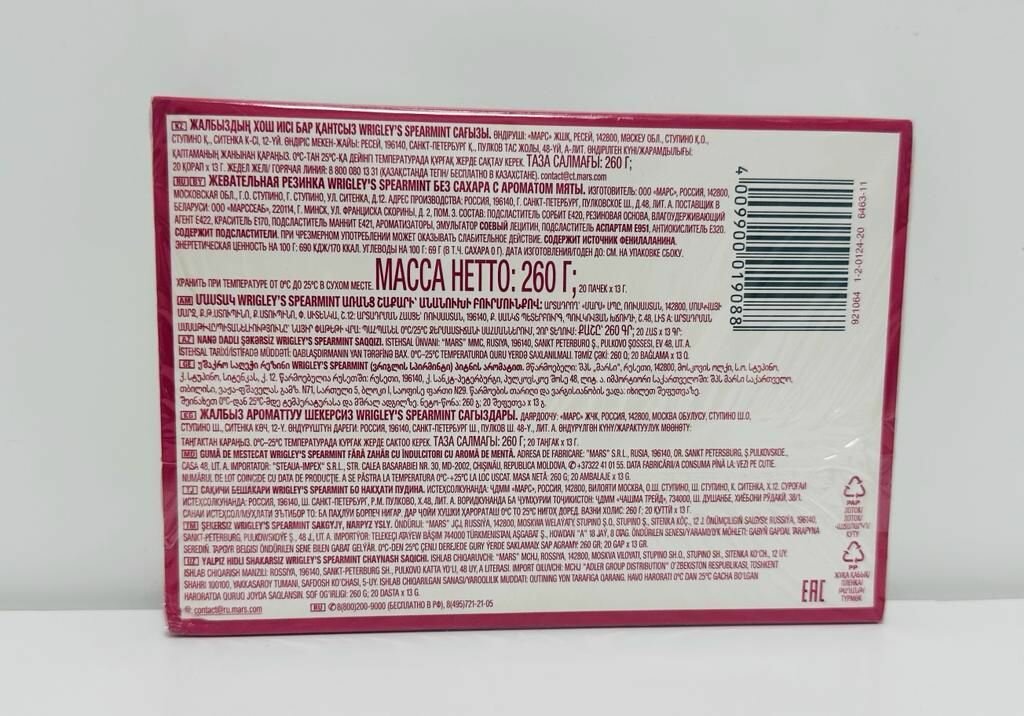 Жевательная резинка Wrigley's Spearmint Свежая мята, 20 штук по 13 г интересное: