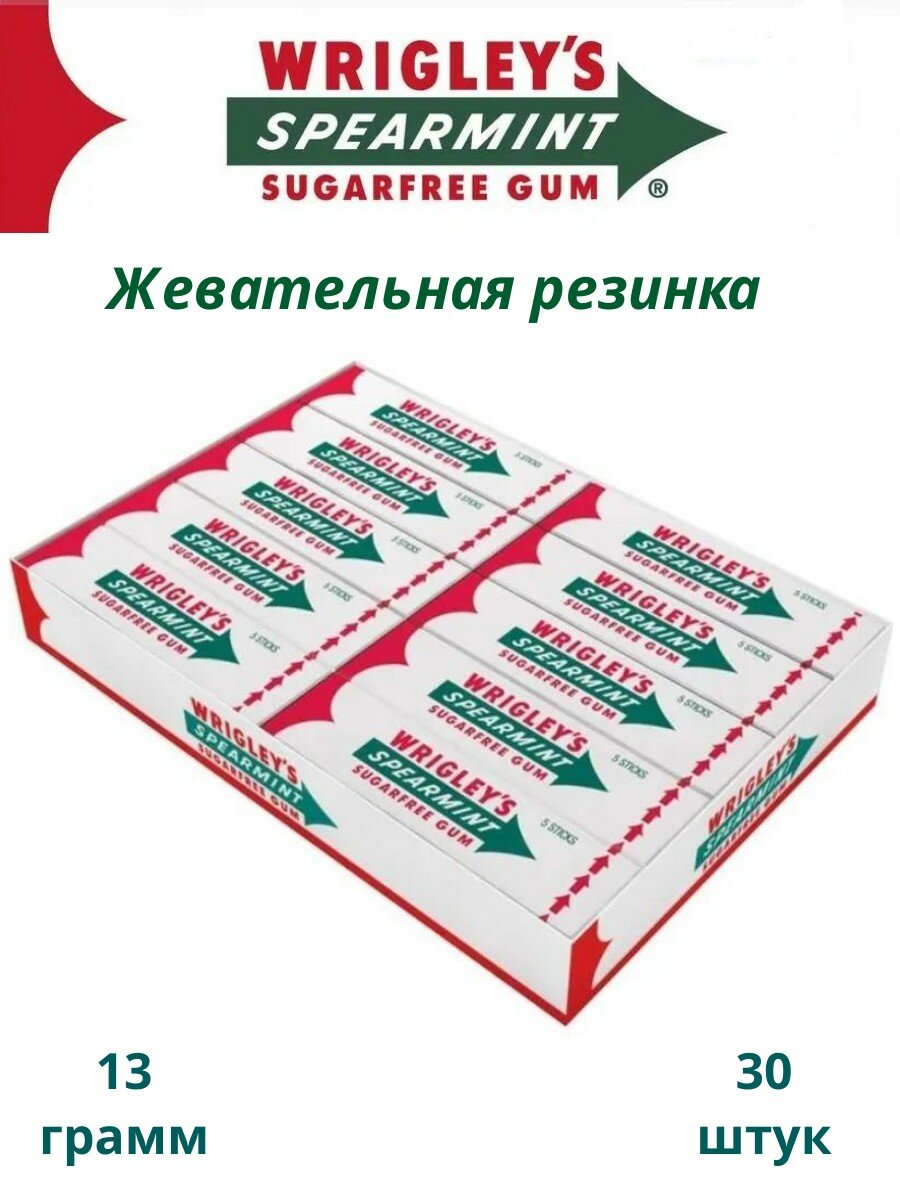 Купить Жевательная резинка Wrigley's Spearmint Свежая мята, 20 штук по 13 г