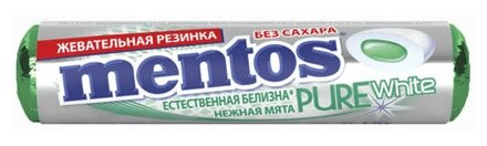 Mentos жевательная резинка Pure white нежная мята, 54 г