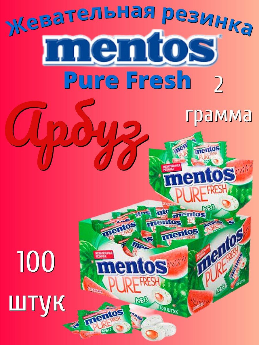 Жевательная резинка Mentos Pure Fresh Арбуз, 100 шт по 2 г