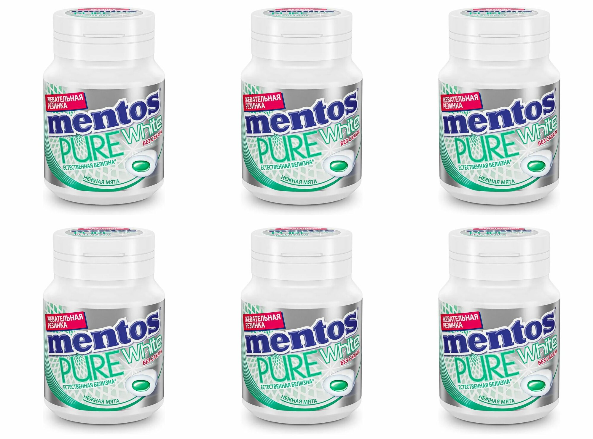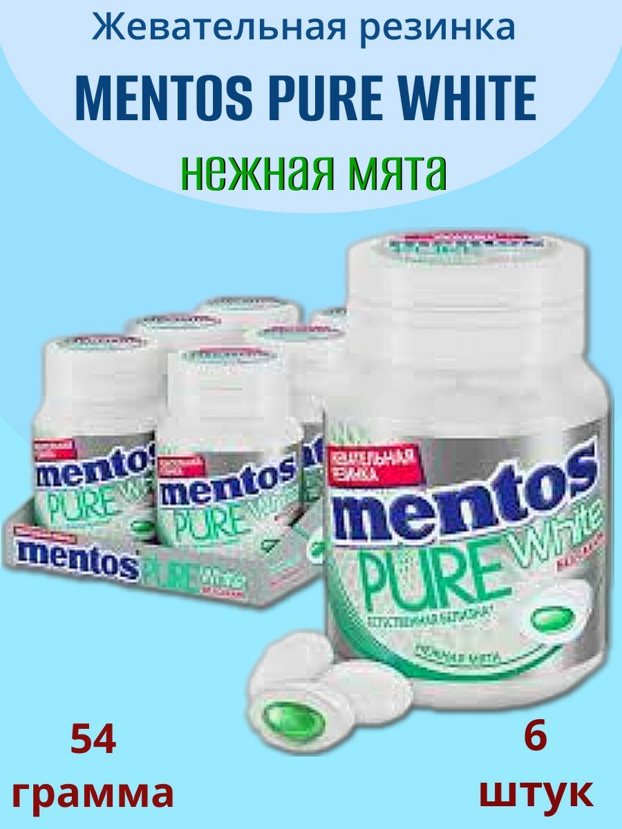 Купить Жевательная резинка Mentos Pure White вкус Нежная мята, 6 шт по 54 г