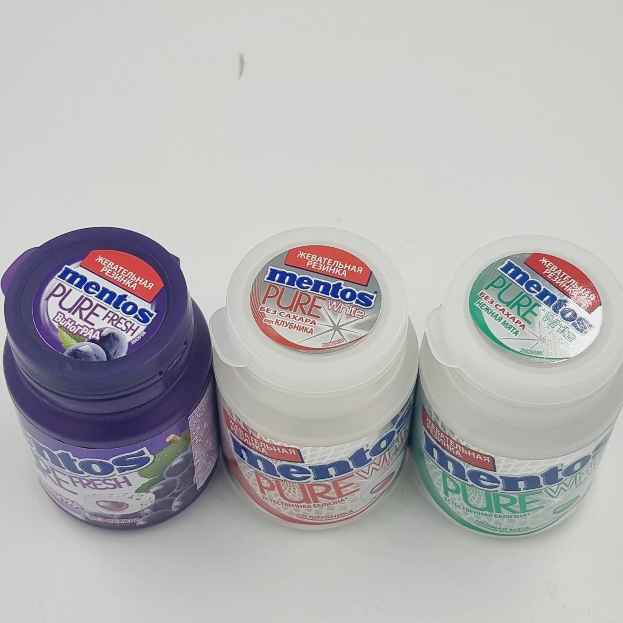 Ниже Вы можете прочитать отзывы на Mentos MIX жевательная резинка Pure fresh Виноград, Pure white нежная мята , Клубника (54х3) 162 г, ознакомится с подробными характеристиками, посмотреть интересные обзоры и фотографии на Mentos MIX жевательная резинка Pure fresh Виноград, Pure white нежная мята , Клубника (54х3) 162 г.