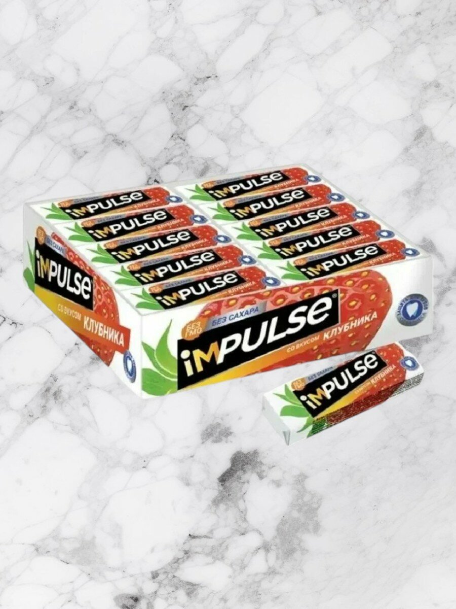 Купить Impulse Жевательная резинка со вкусом «Клубника», без сахара, 30шт. Х 14 г