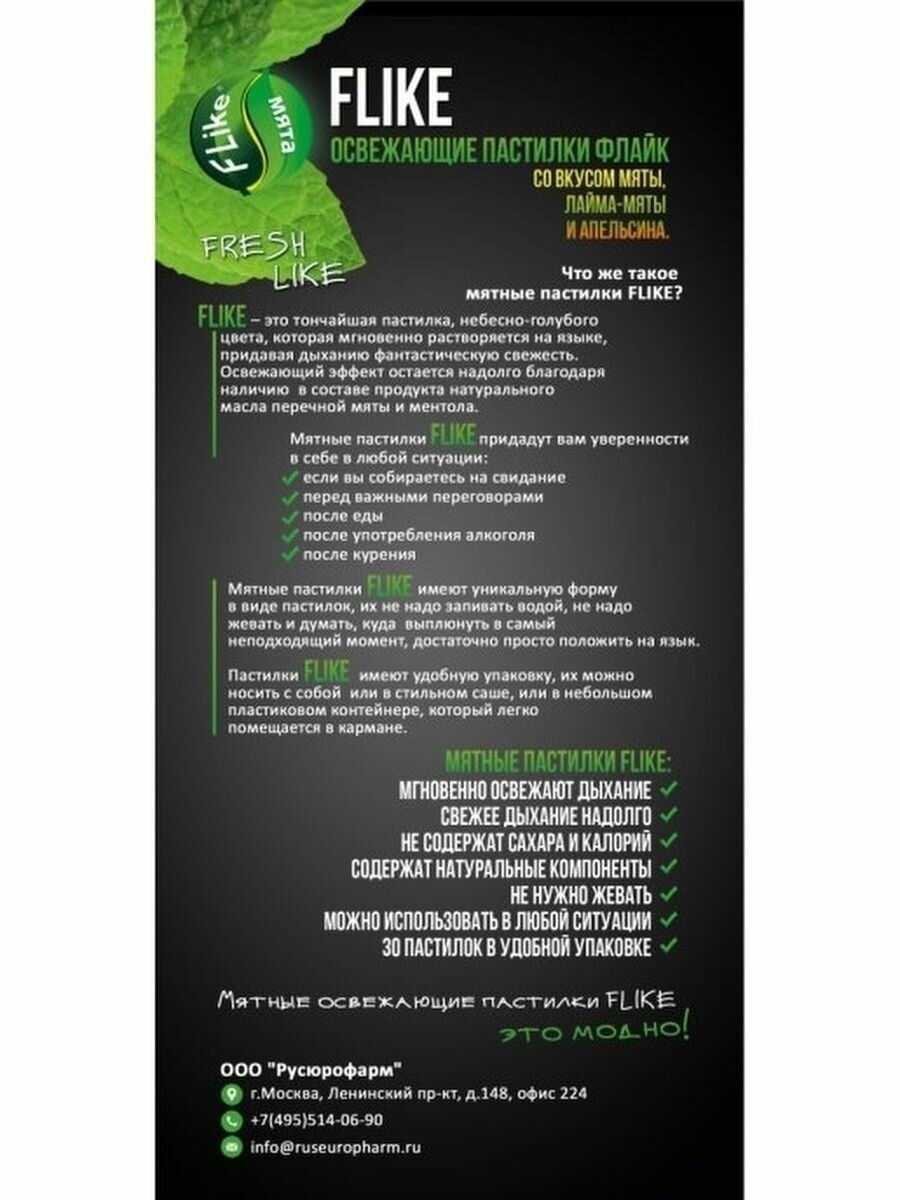 Пастилки Флайк для свежего дыхания (лайм-мята),5х30 пастилок интересное: