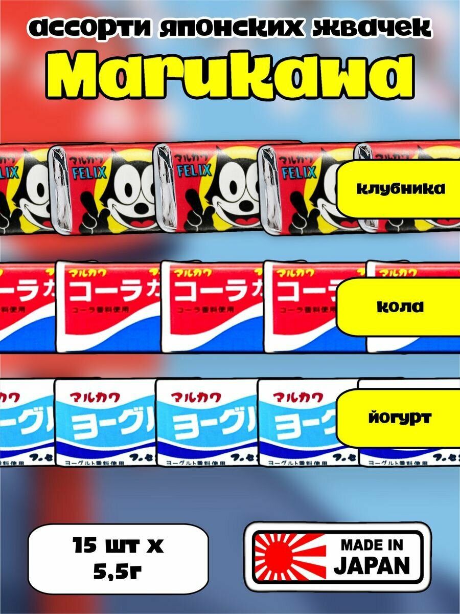 Купить жевательная резинка из Япония ассорти/набор жвачек Marukawa (Феликс 5 шт, Кола 5 шт, йогурт 5 шт)