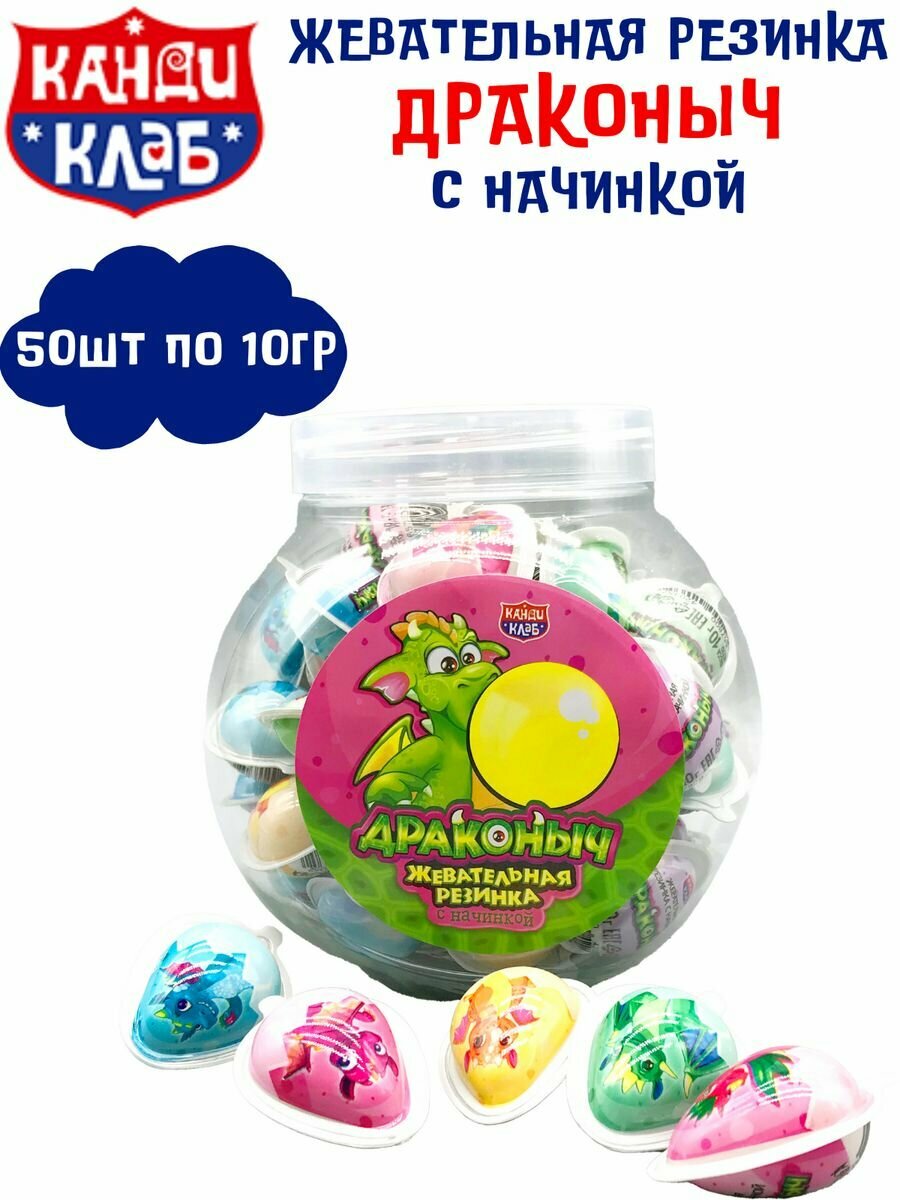 Жевательная резинка драконыч с начинкой 50 шт по 10 гр интересное: