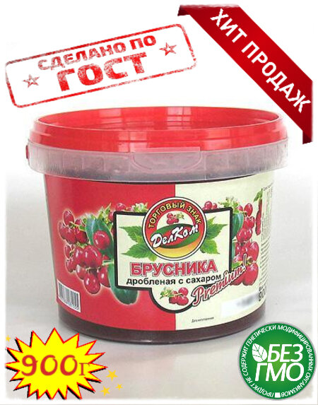 Брусника дроблёная (протертая) с сахаром 900г интересное: