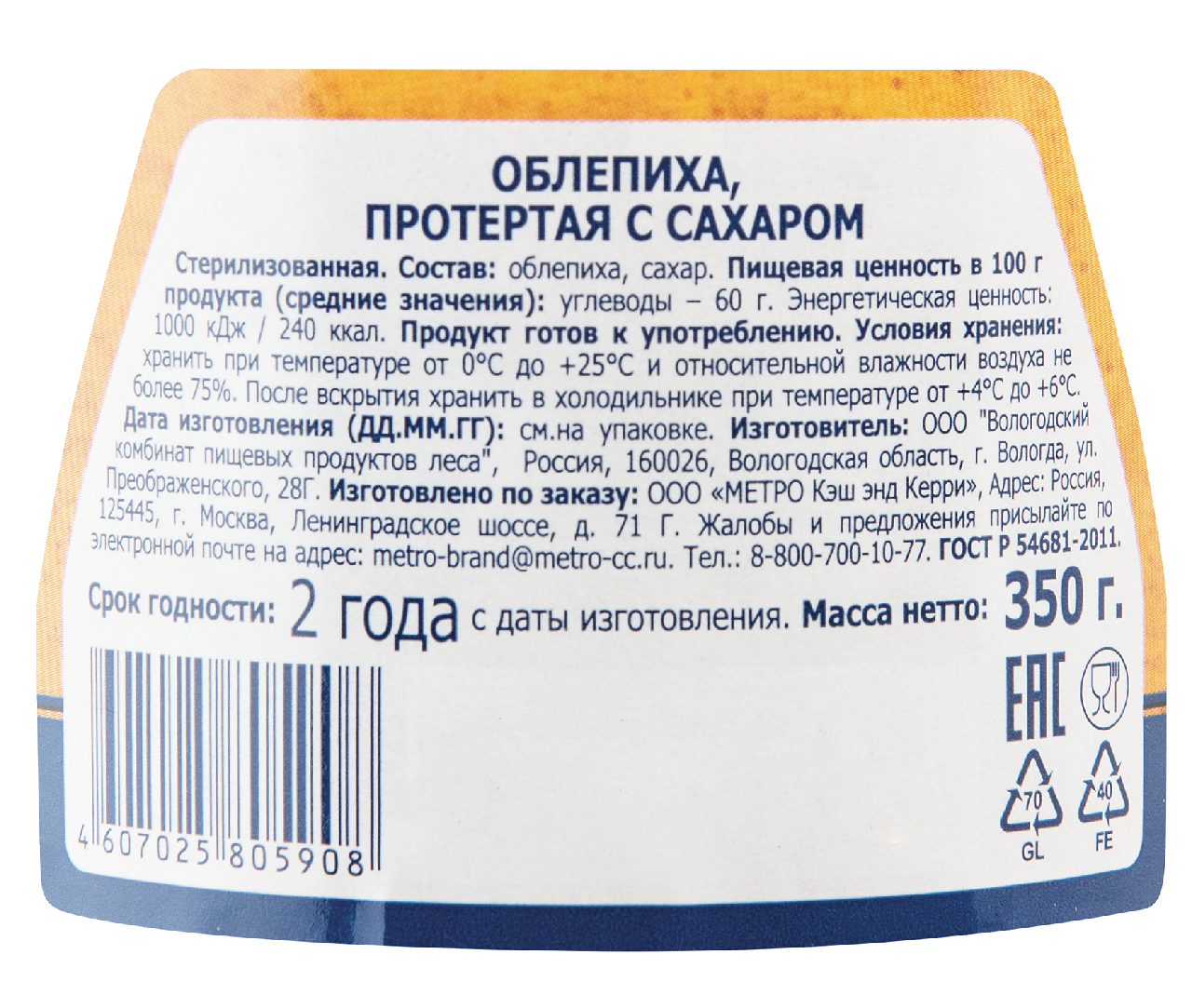 Ниже Вы можете прочитать отзывы на Протертая облепиха Metro Chef с сахаром 350 г, ознакомится с подробными характеристиками, посмотреть интересные обзоры и фотографии на Протертая облепиха Metro Chef с сахаром 350 г.
