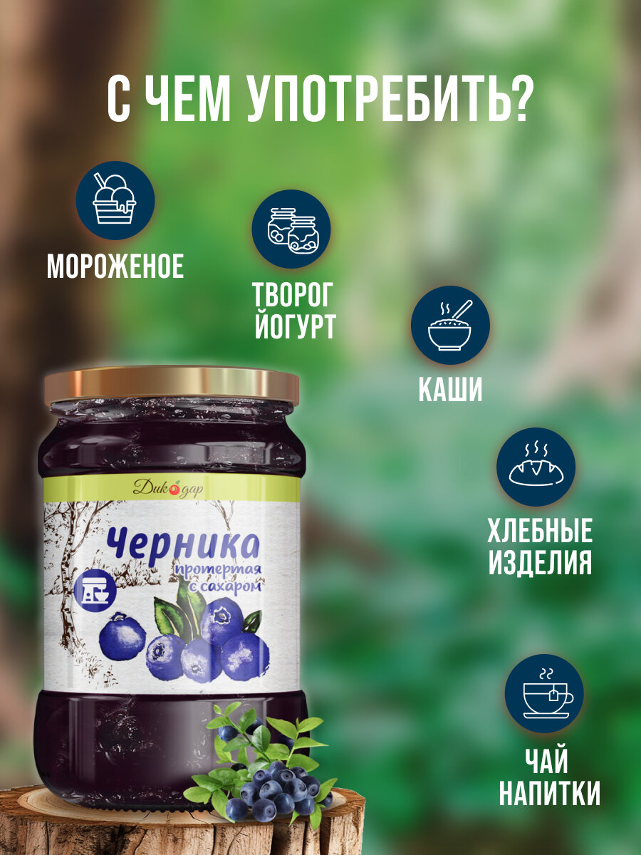 Купить Протертая черника с сахаром 0.5 л - 570 гр