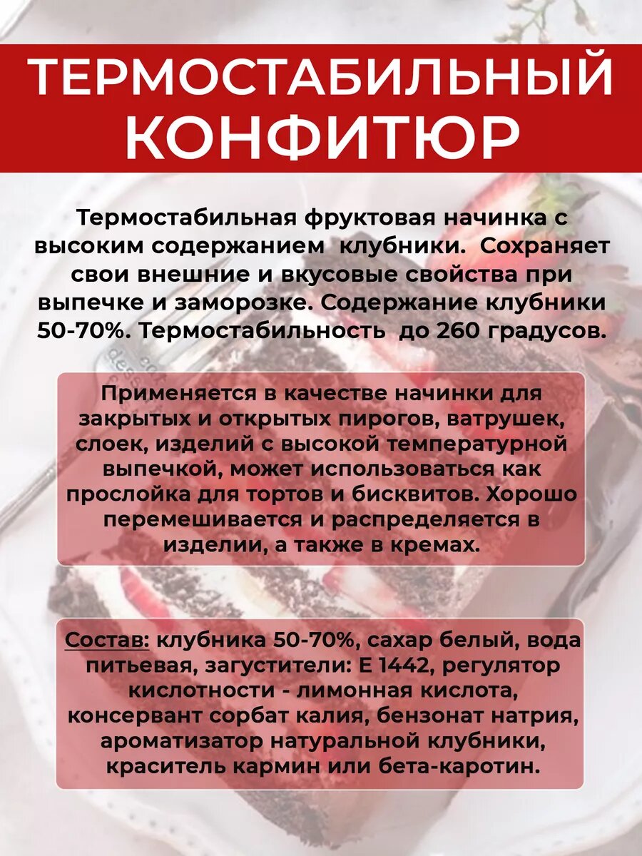 СохранитьКонфитюр для выпечки термостабильный начинка клубника 500г интересное: