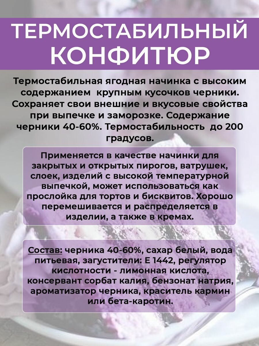Купить Конфитюр для выпечки термостабильный начинка черника 500г