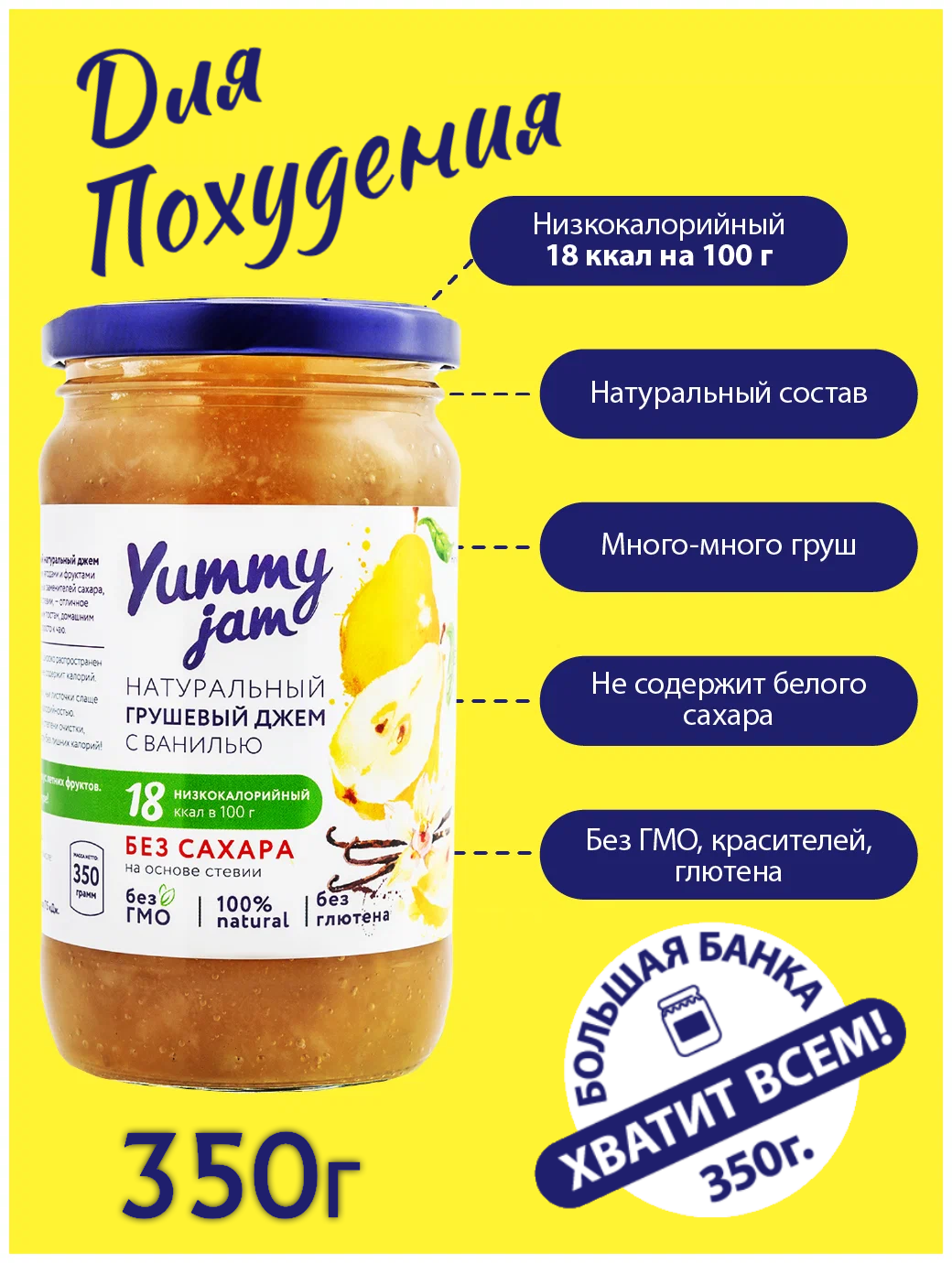 Купить Джем Yummy jam натуральный грушевый с ванилью без сахара