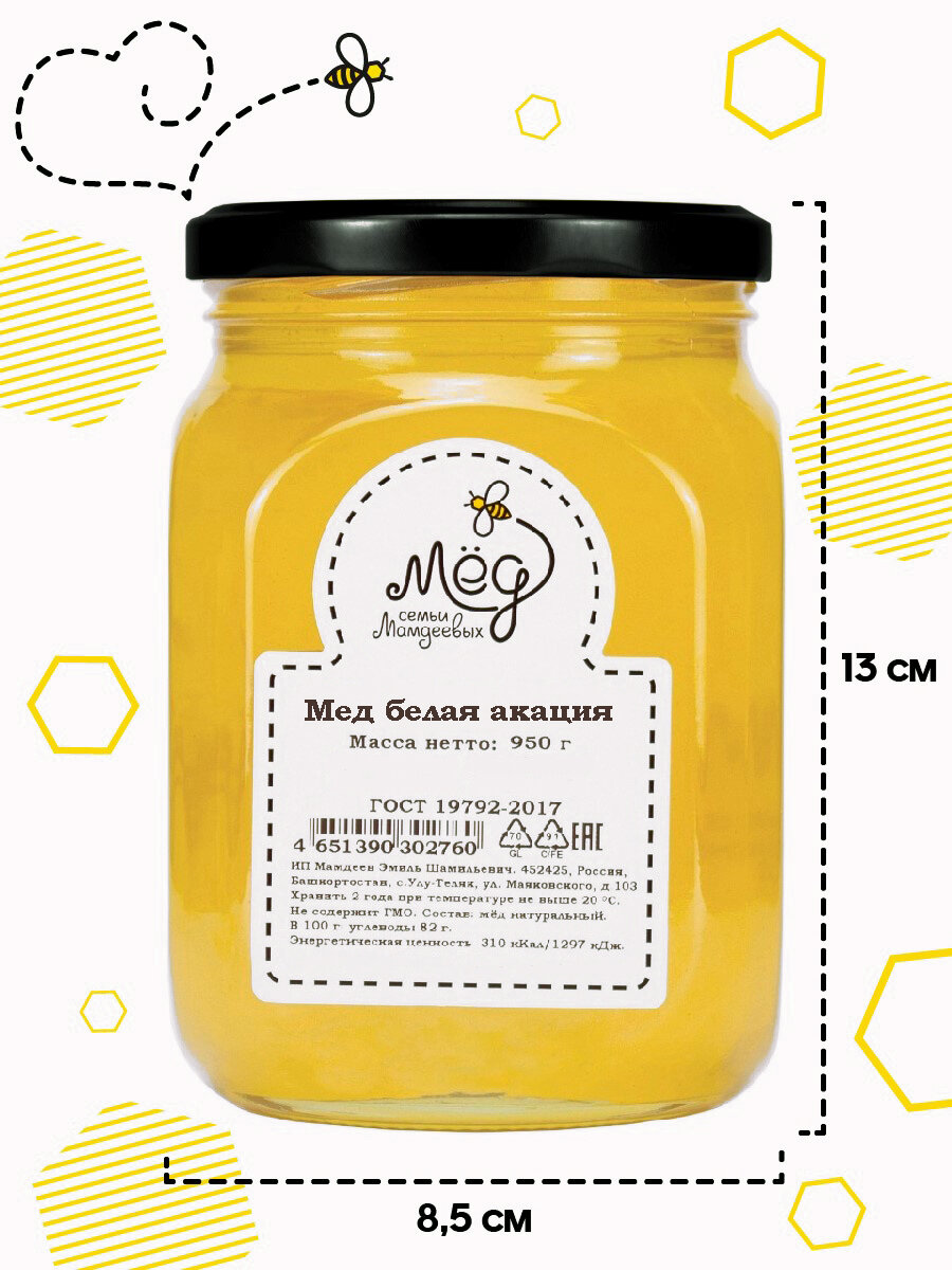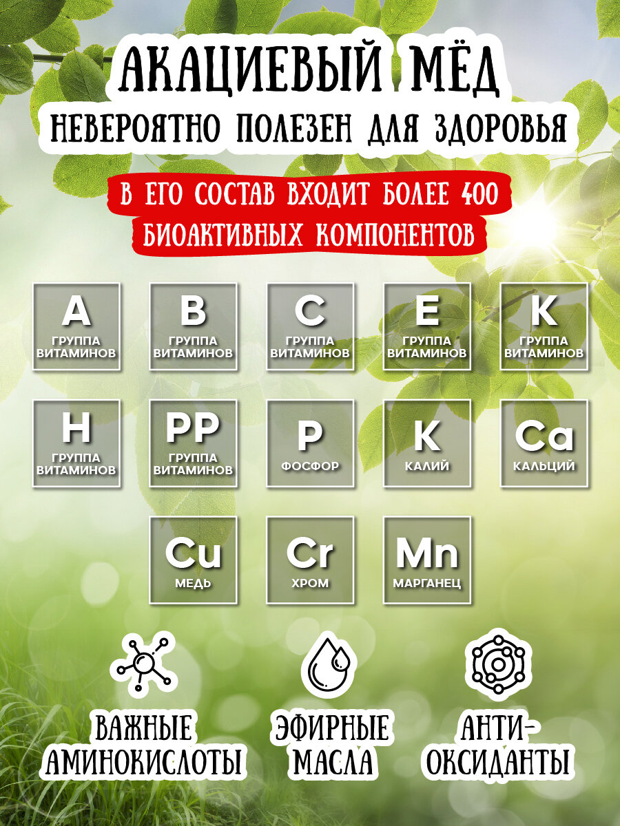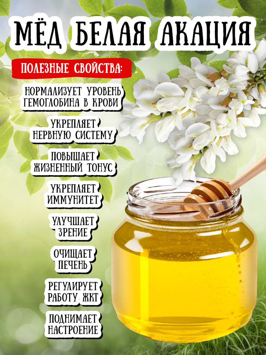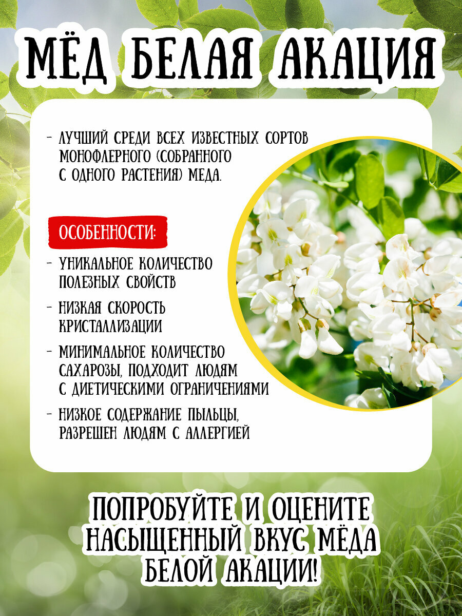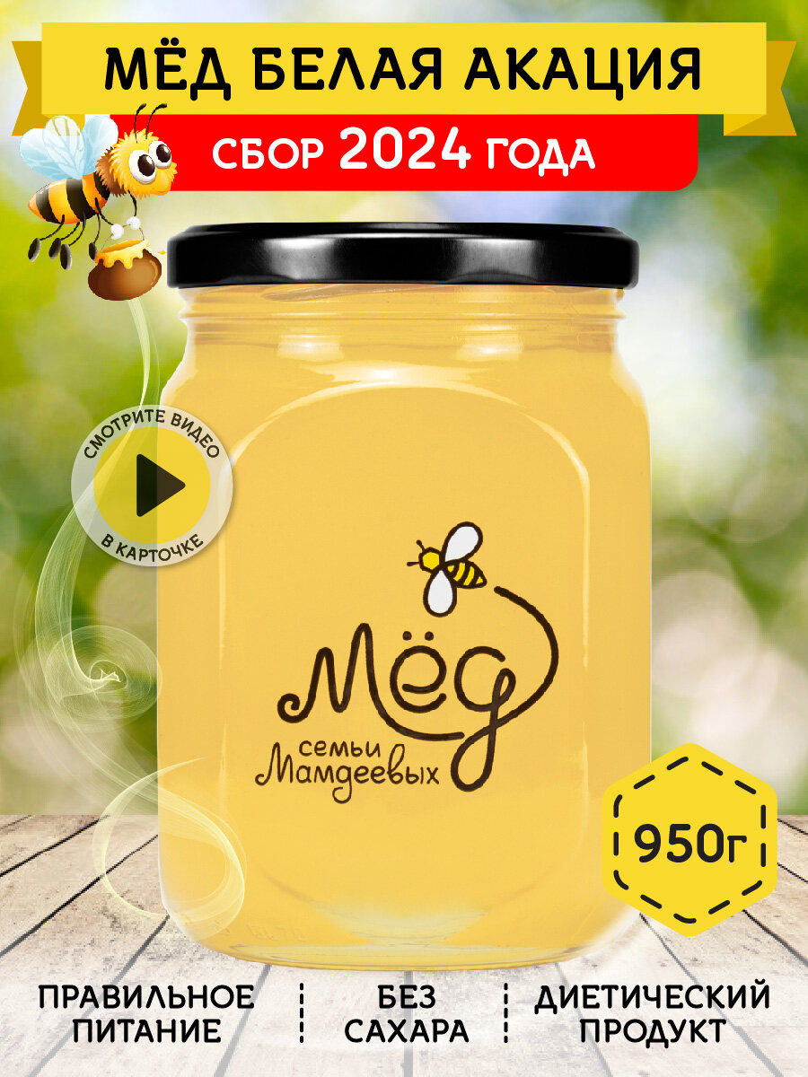 Мёд белая акация, 950 г натуральный мед, без сахара интересное: