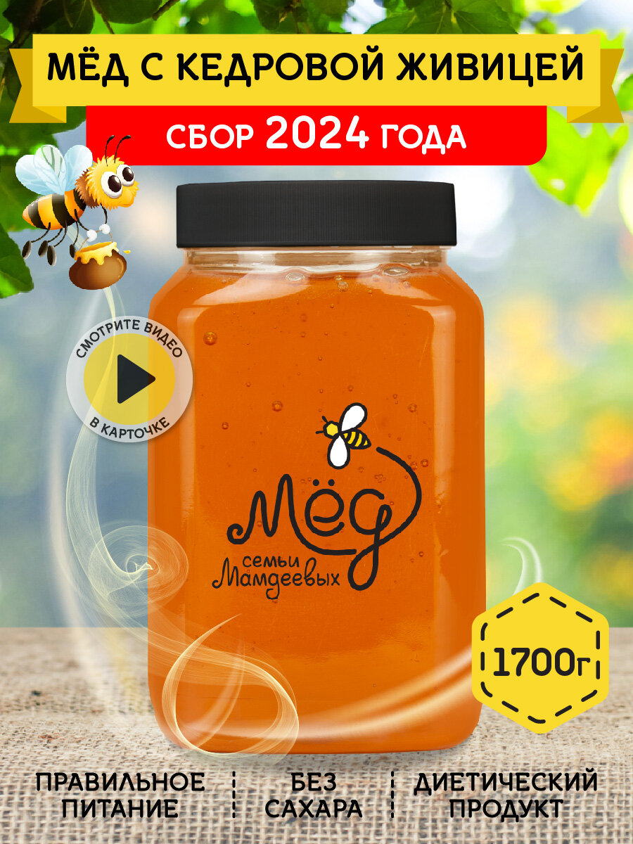 Мёд с кедровой живицей, 1,7 кг Башкирский натуральный мед, без сахара интересное: