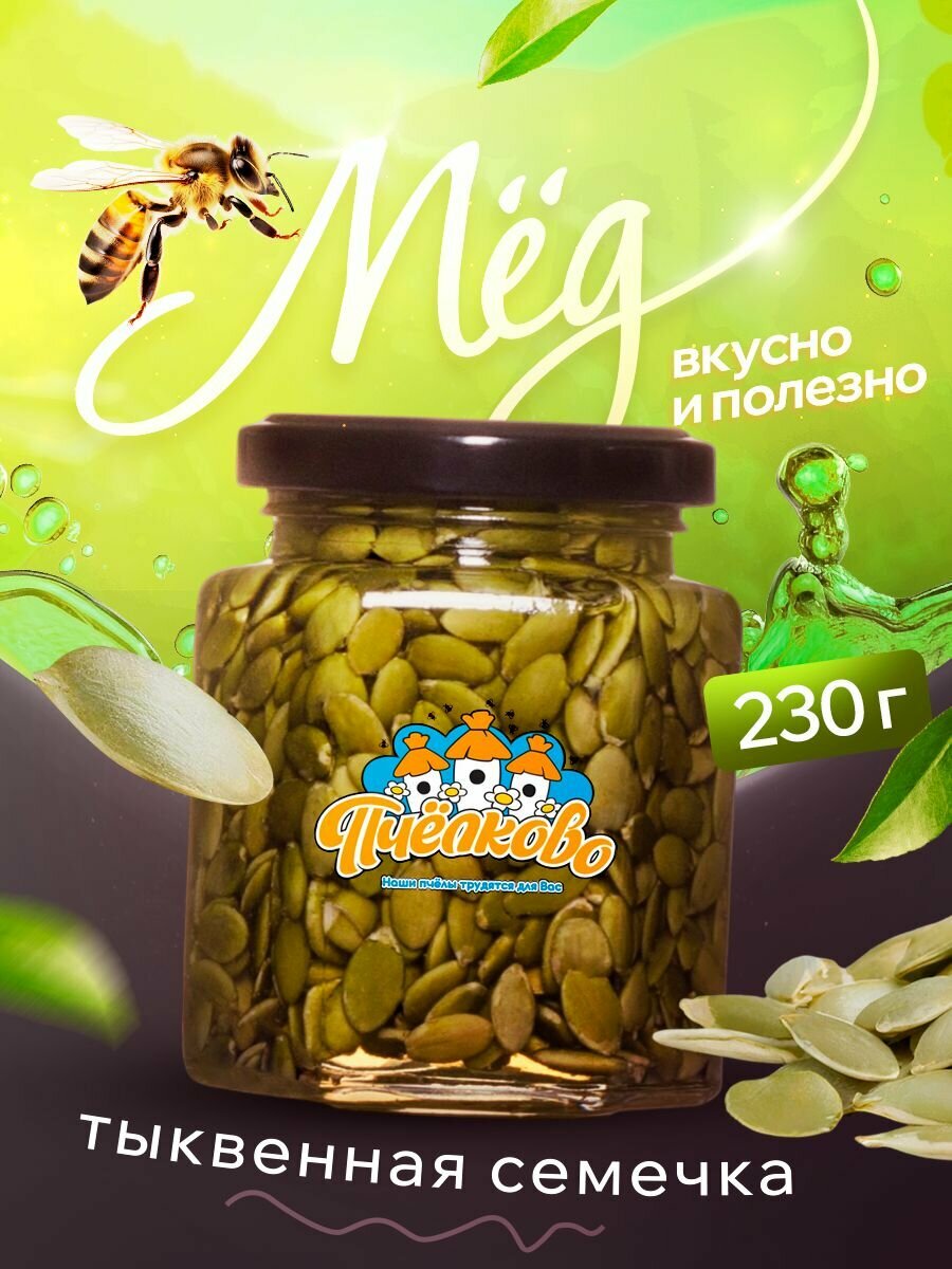 Мед с тыквенными семечками 230 гр, цветочный, органический продукт.