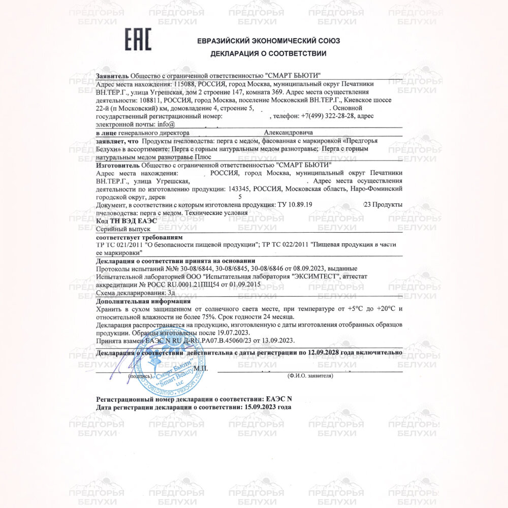 Купить Перга с горным натуральным медом разнотравье Плюс Предгорья Белухи / Smart Bee, 140 гр