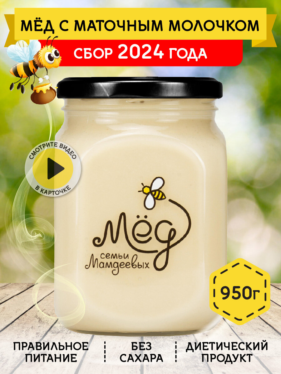 Натуральный Мёд с маточным молочком, 950 г сбор 2024 без сахара интересное: