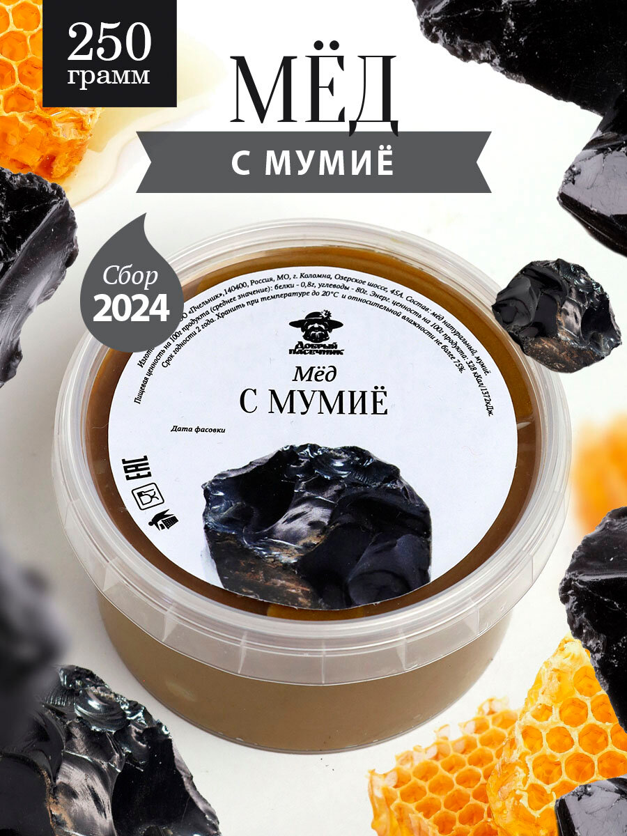 Мед с алтайским мумие 250 г в стеклянной банке, для иммунитета, вкусный подарок