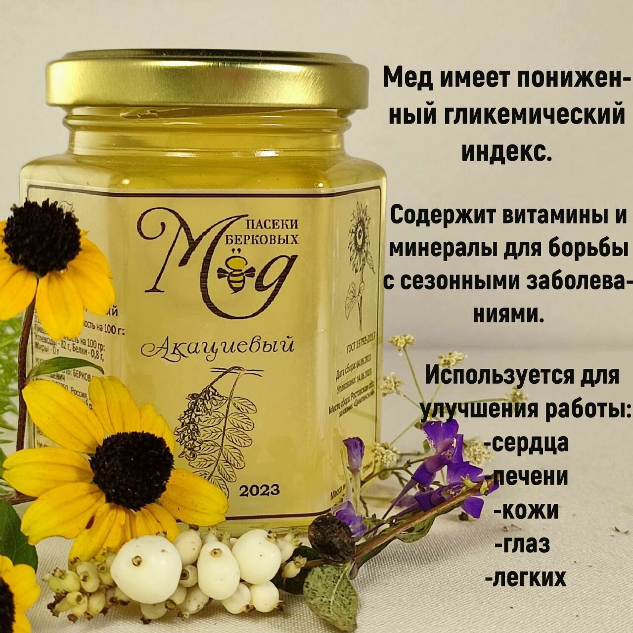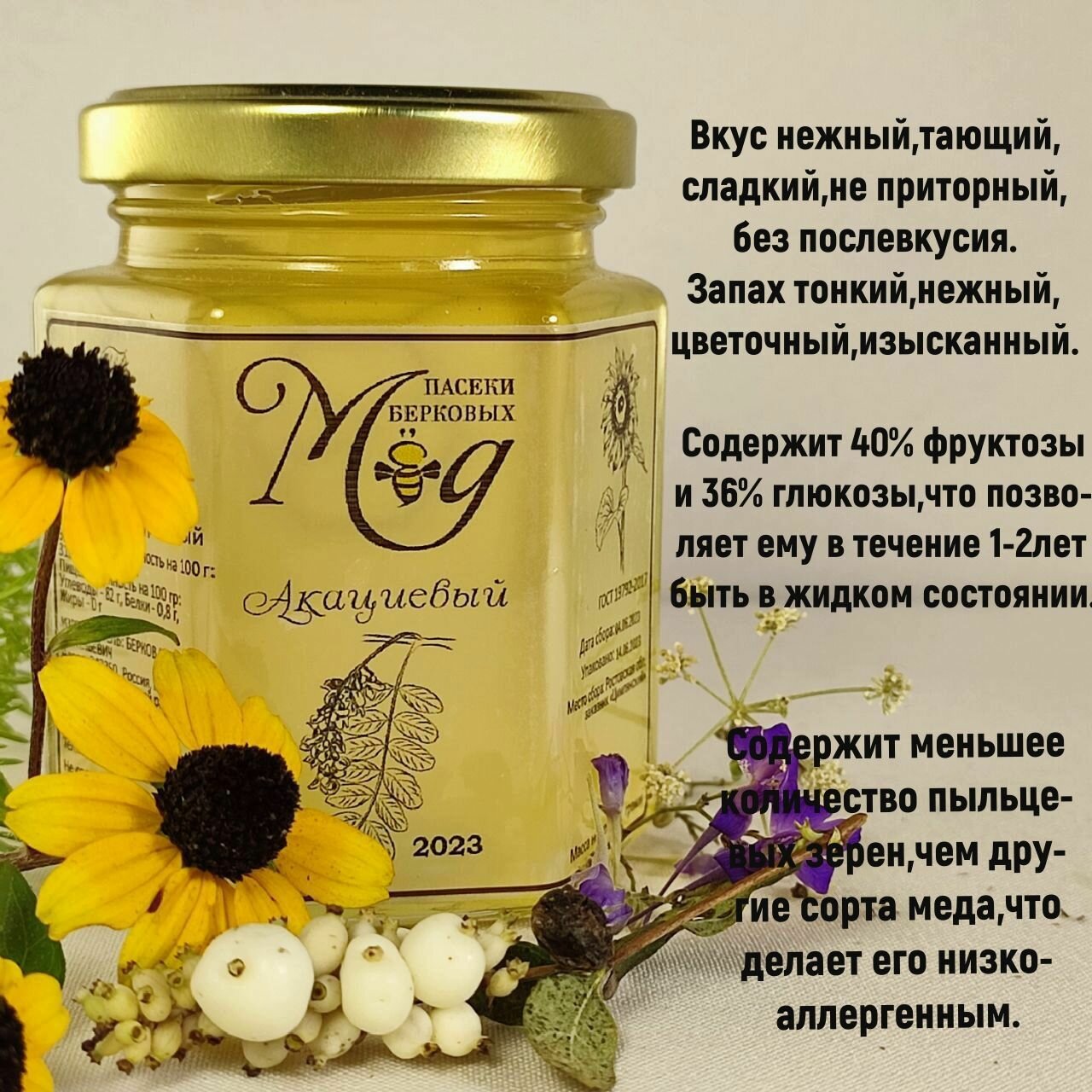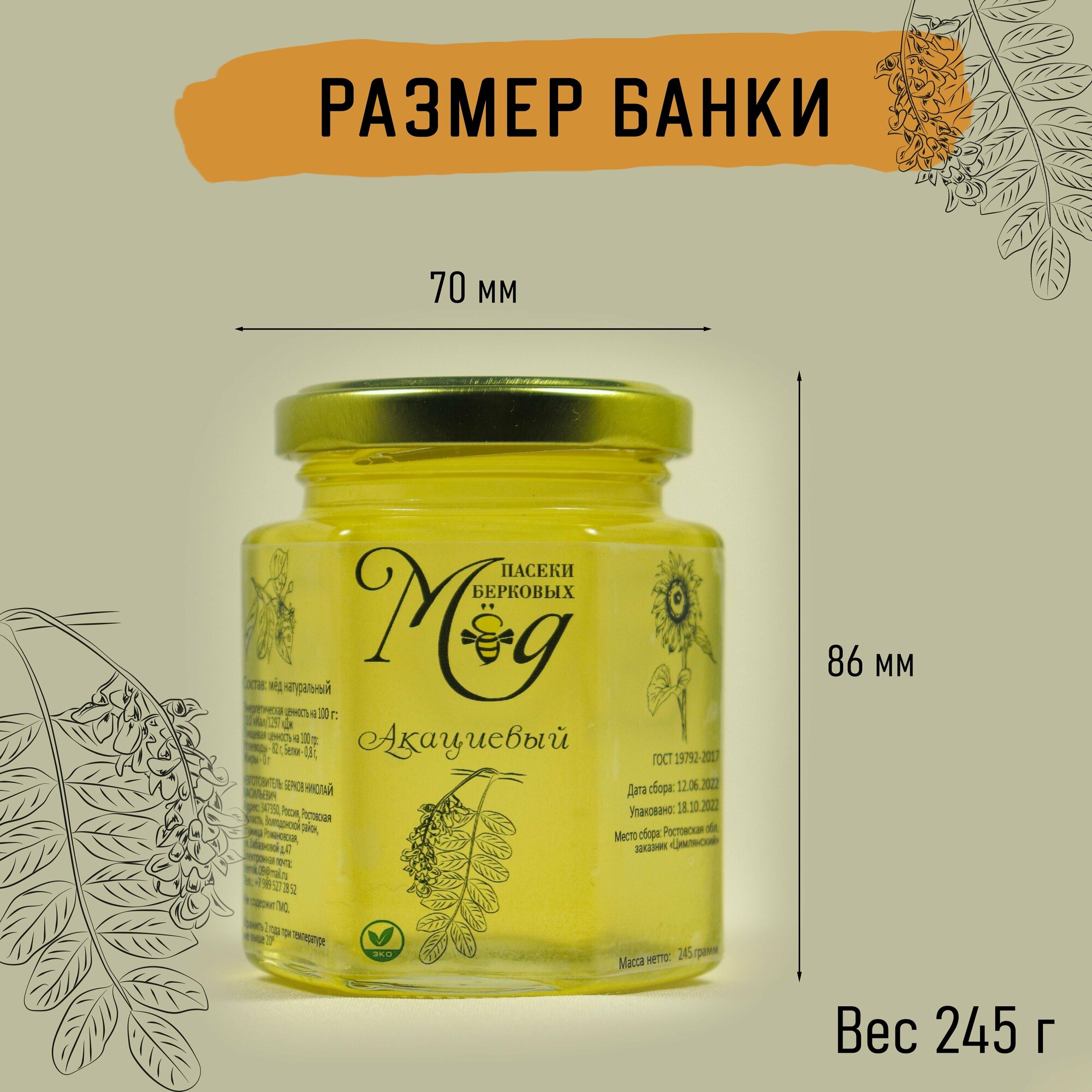 Мед Акациевый 245 г, натуральный Акациевый мёд 2023 г, мед пасеки Берковых