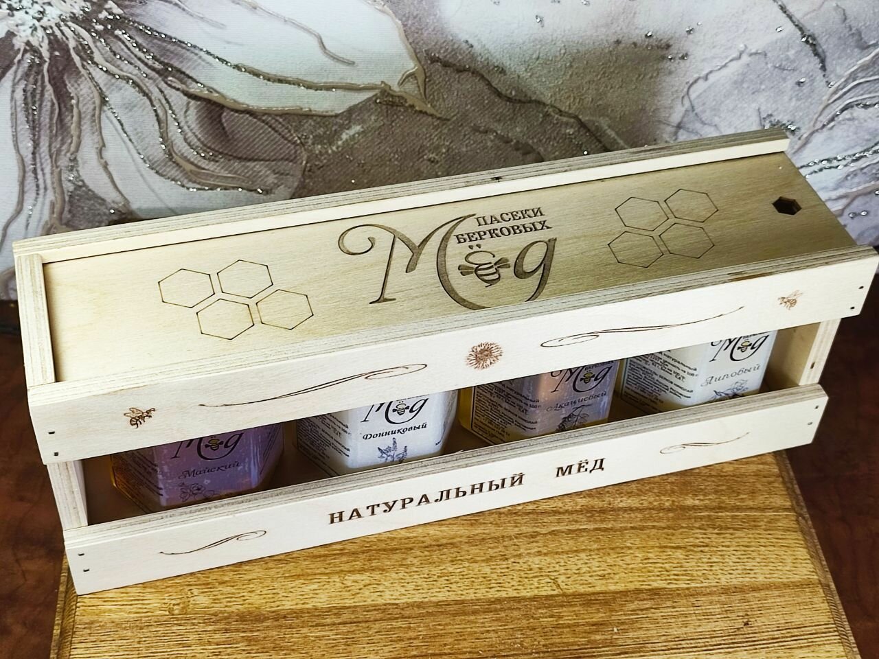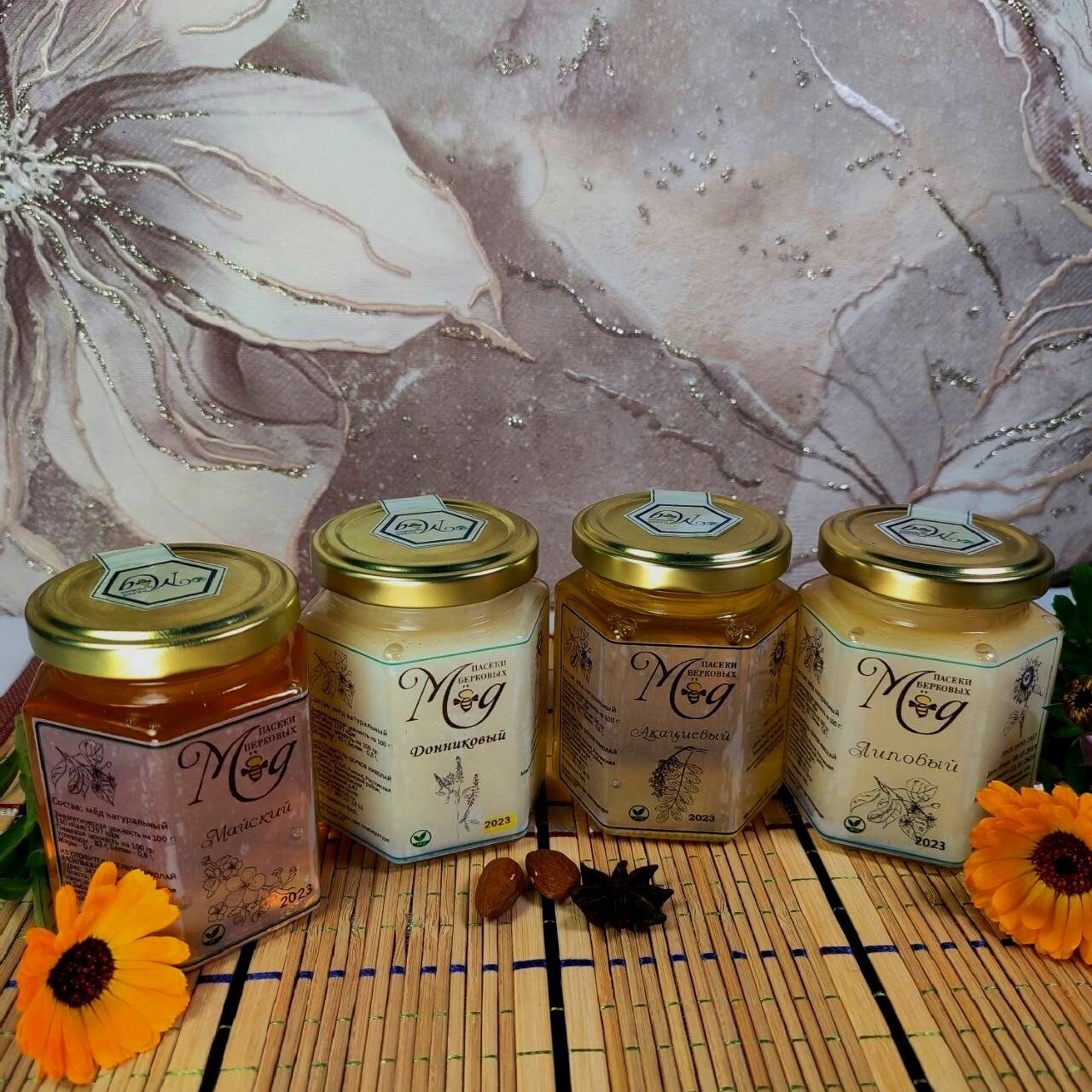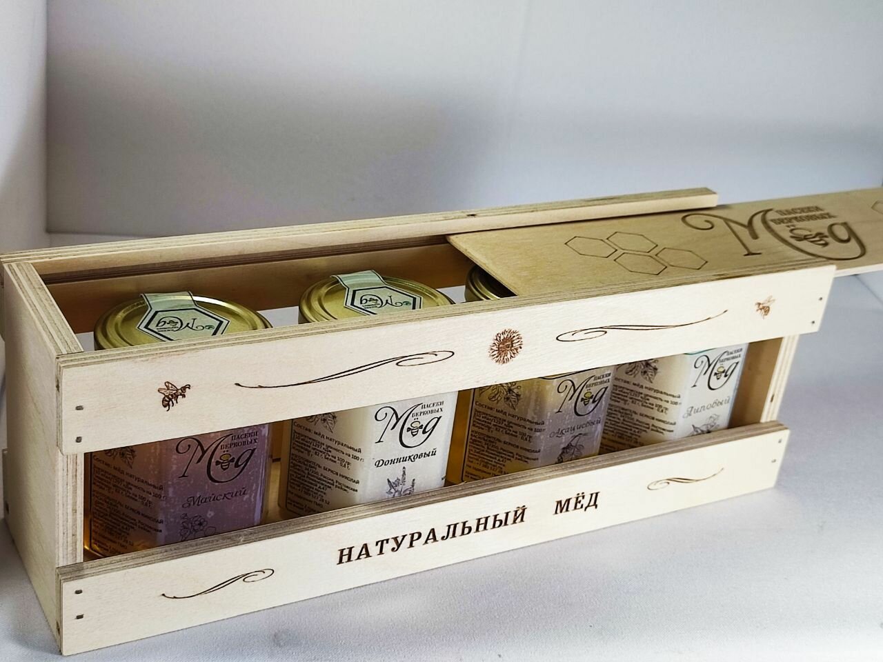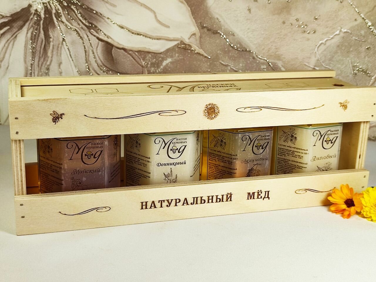 Купить Мед подарочный набор, 4х245 г, акациевый, донниковый, майский, липовый, пасека Берковых, 2023 год
